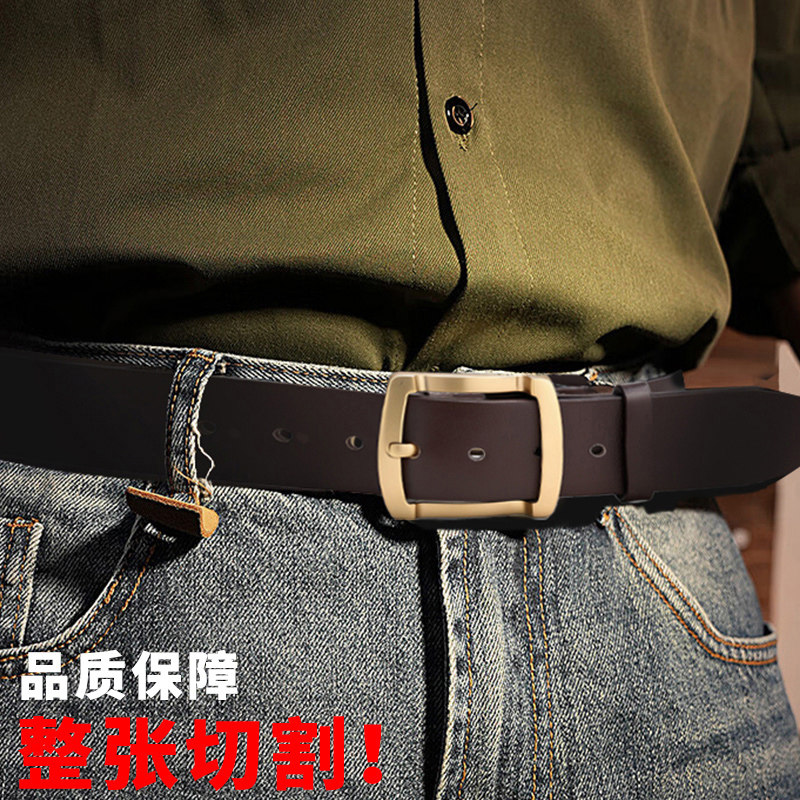 纯牛皮皮带男真皮休闲裤带男牛皮带年轻人针扣牛仔中年腰带男青年