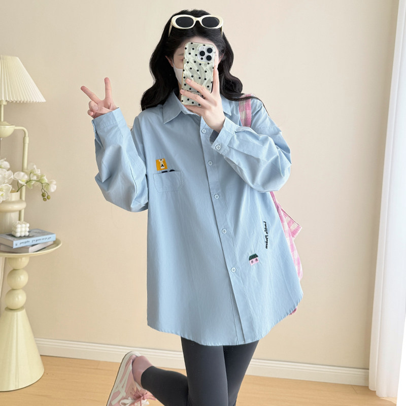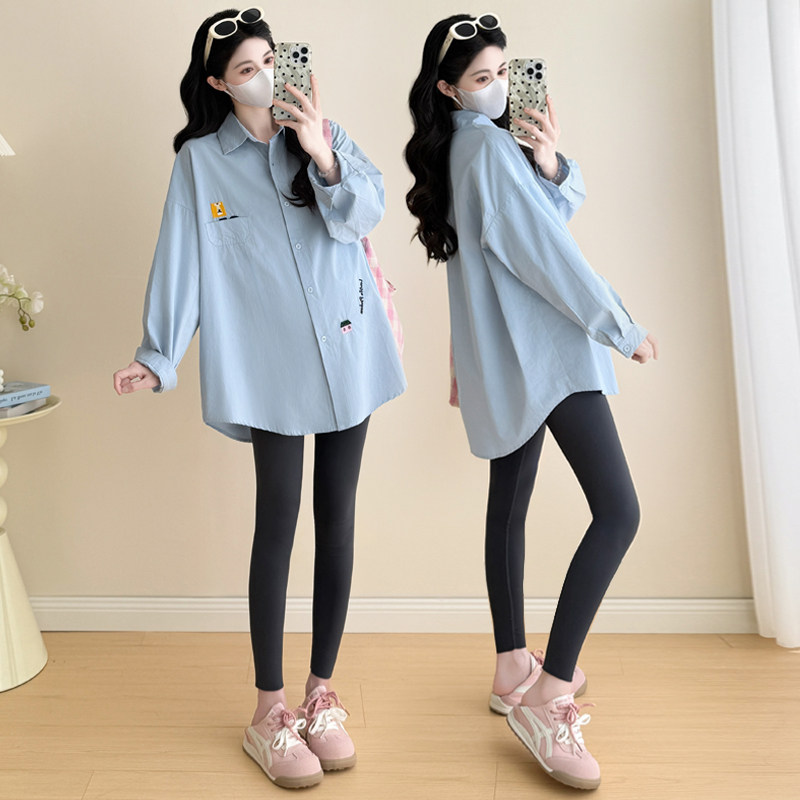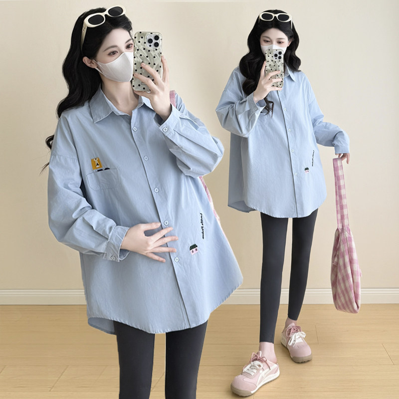 婧麒孕妇装衬衫2025新款春秋季宽松显瘦上衣女长袖衬衣外套孕妇装