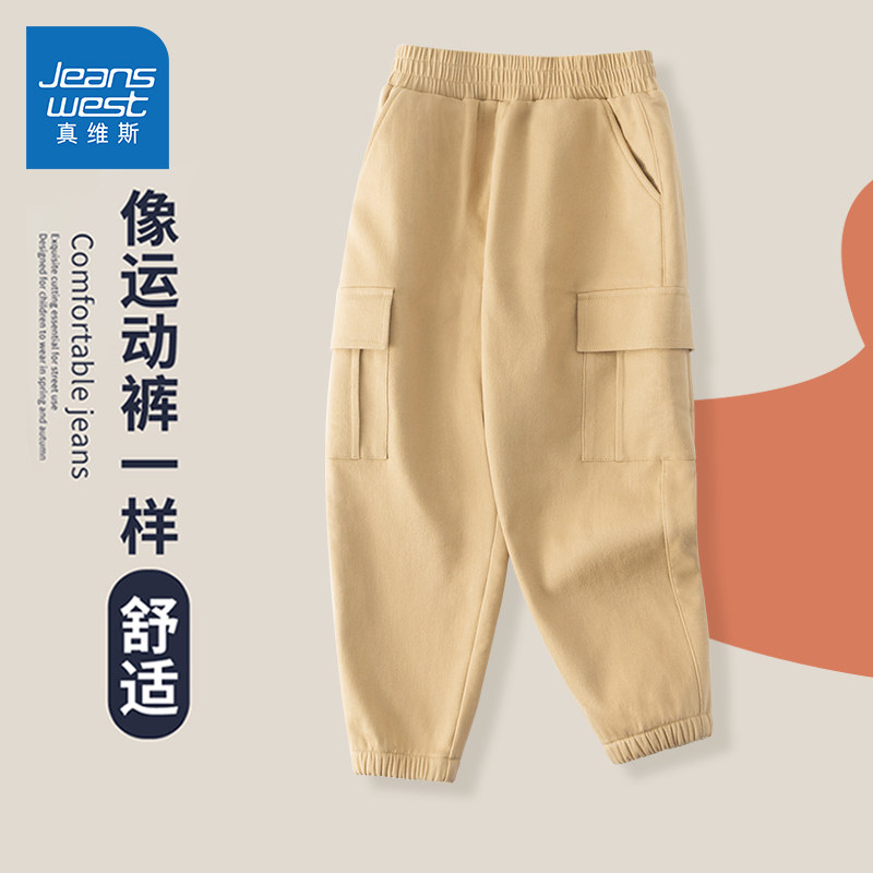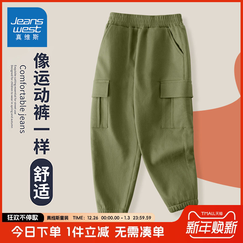 真维斯童装男童裤子春秋款儿童军绿色工装裤男大童纯棉薄款运动裤