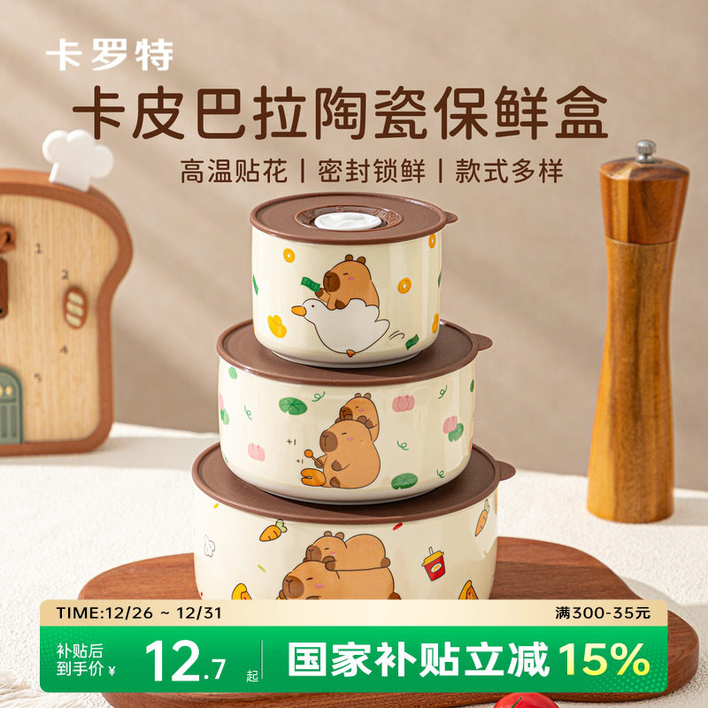 卡罗特陶瓷饭盒上班族微波炉加热便当盒专用碗保鲜盒餐盒带盖分隔