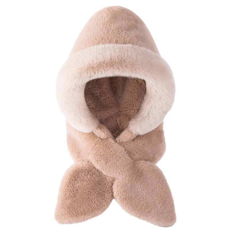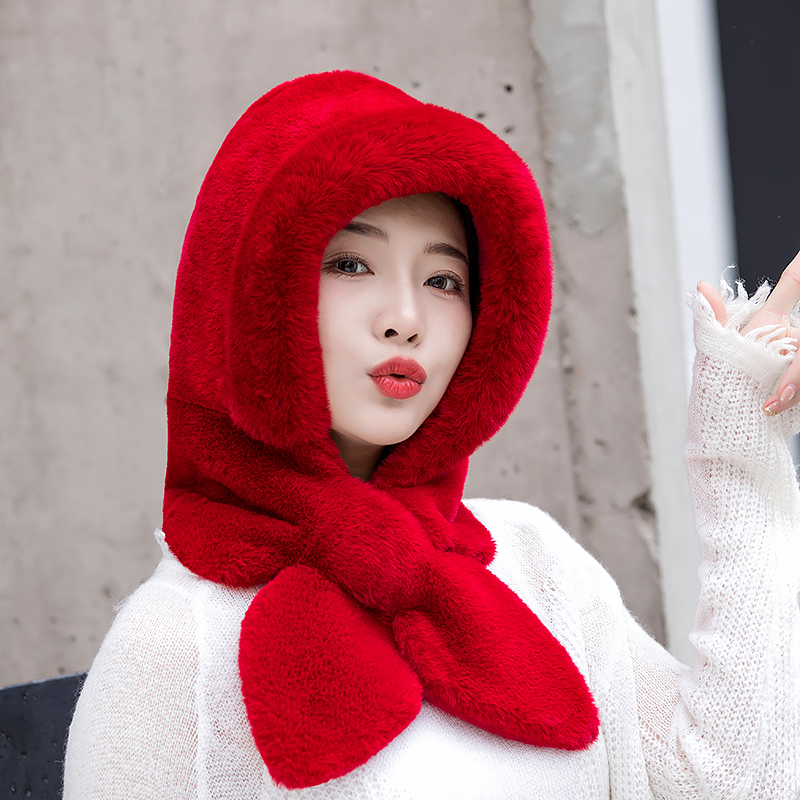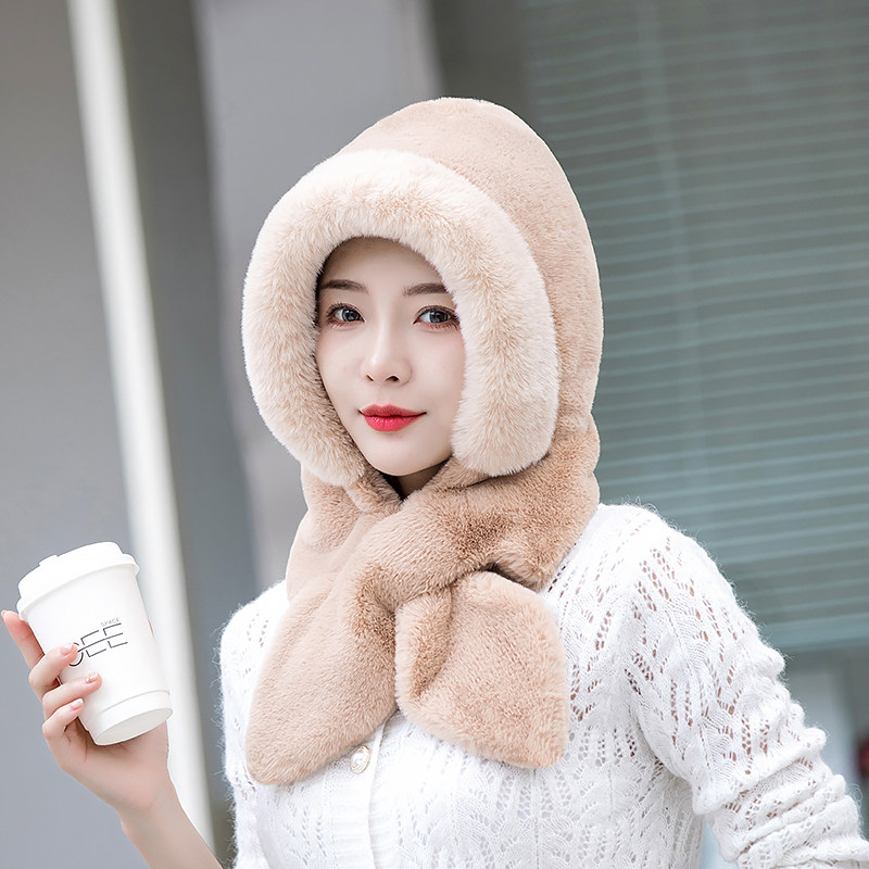 围巾帽子手套一体女连帽冬季帽可爱保暖围脖毛绒冬天三件套厚防寒
