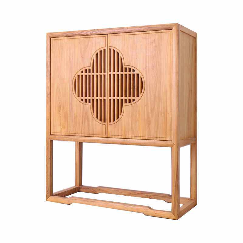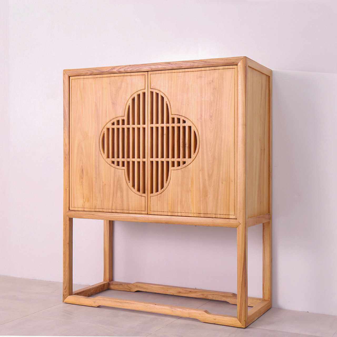 新中式餐边柜老榆木实木玄关柜客厅边柜储物柜梅花柜禅意黑胡桃木