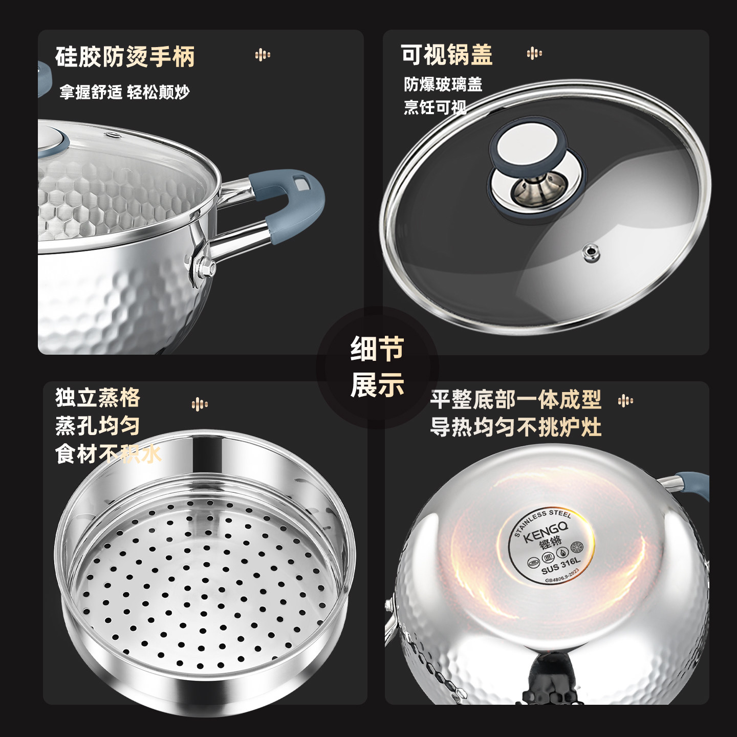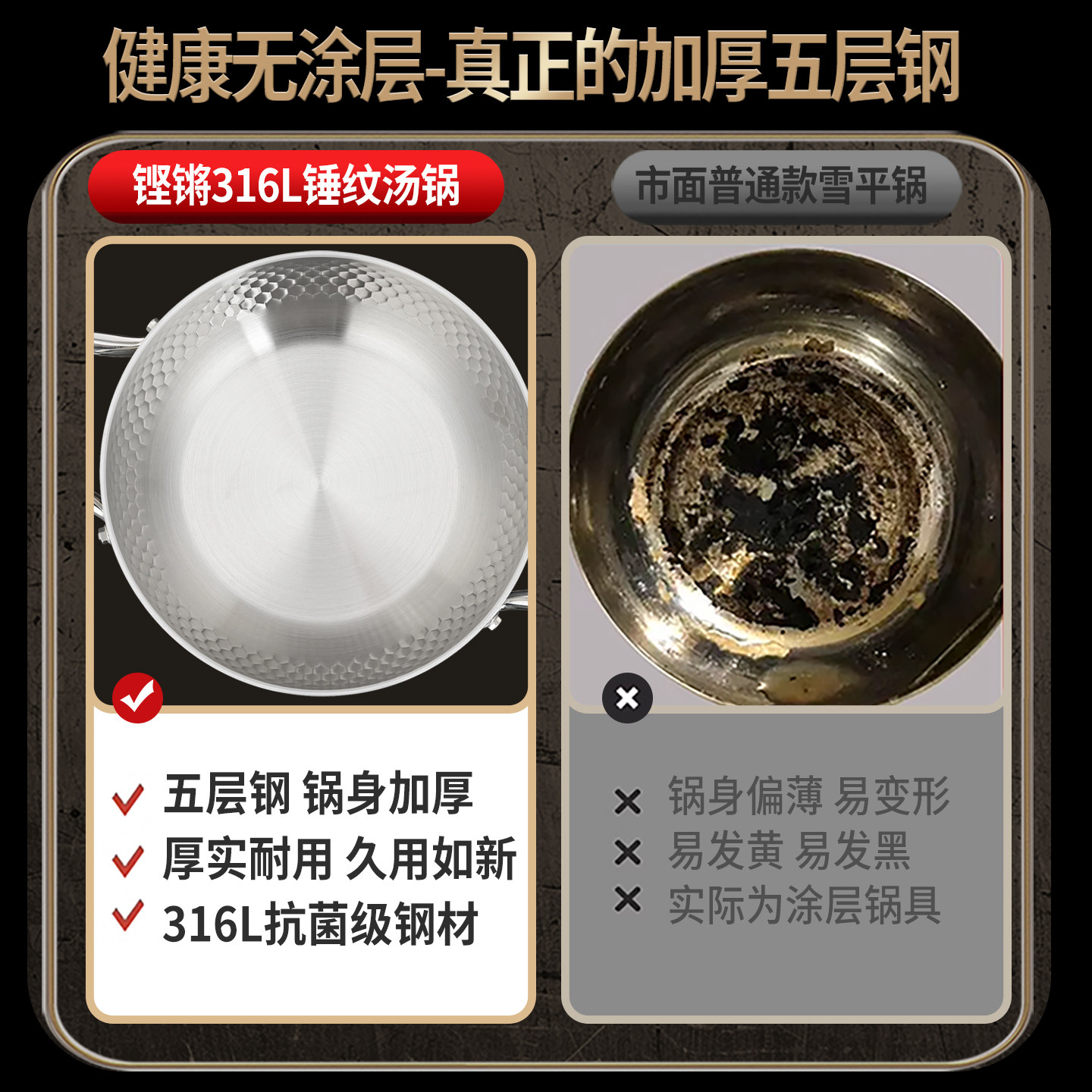 铿锵316不锈钢双耳火锅家用无涂层清汤锅电磁炉专用一人食小火锅