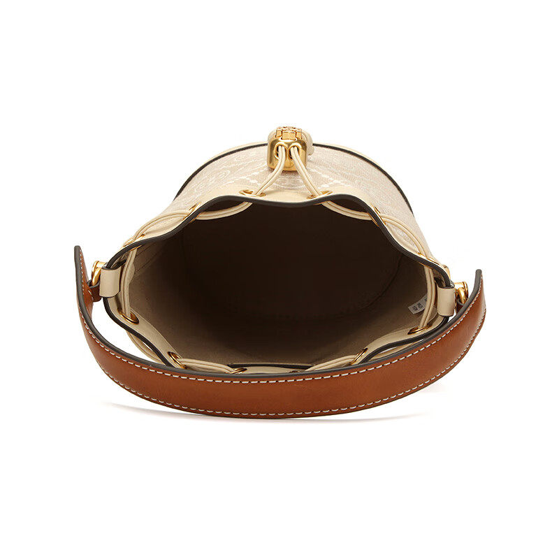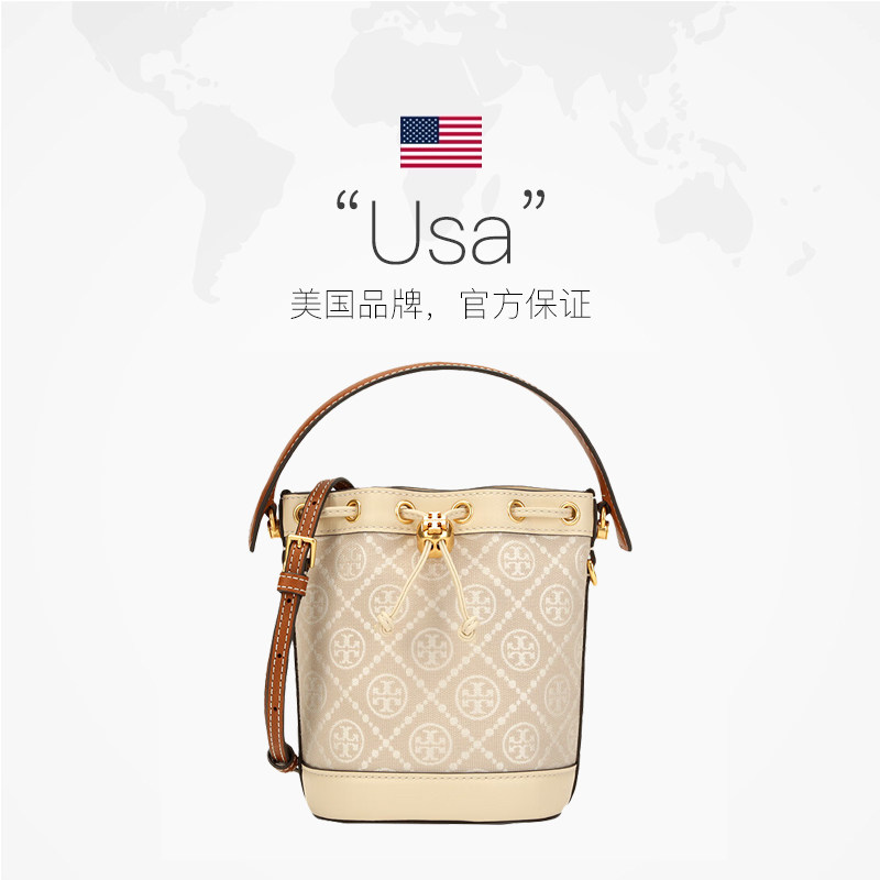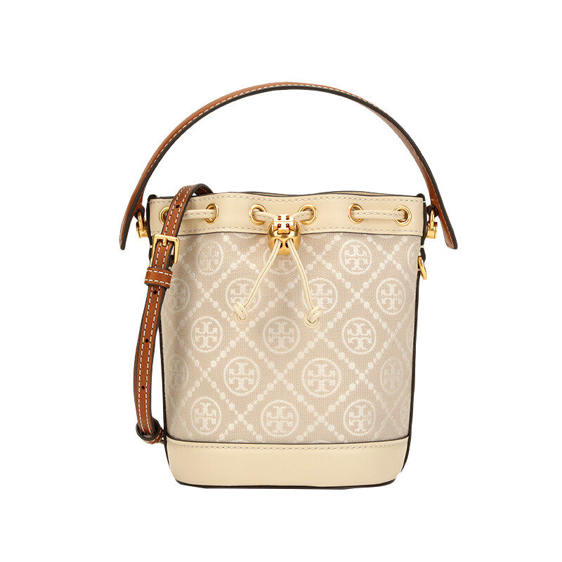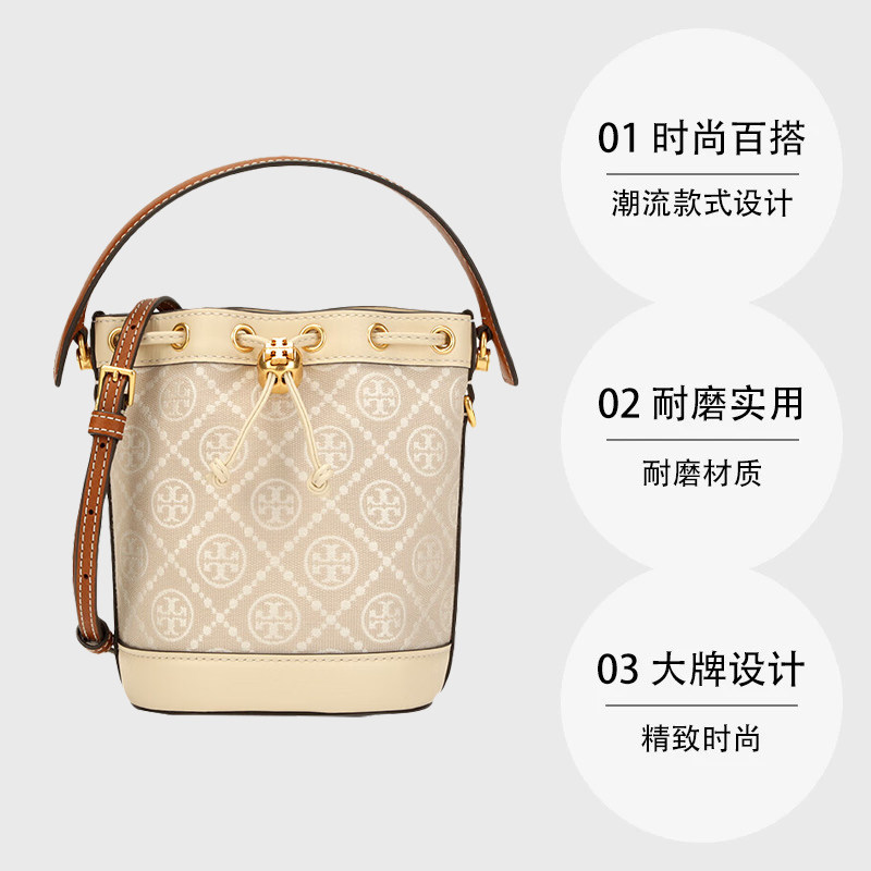 【自营】Tory Burch/汤丽柏琦女士提花迷你单肩手提抽绳水桶包