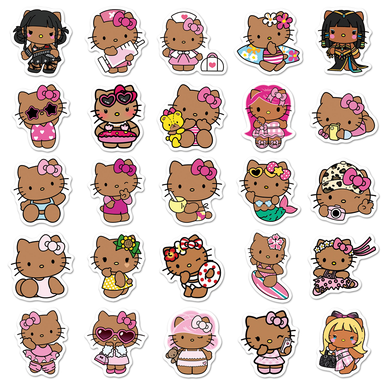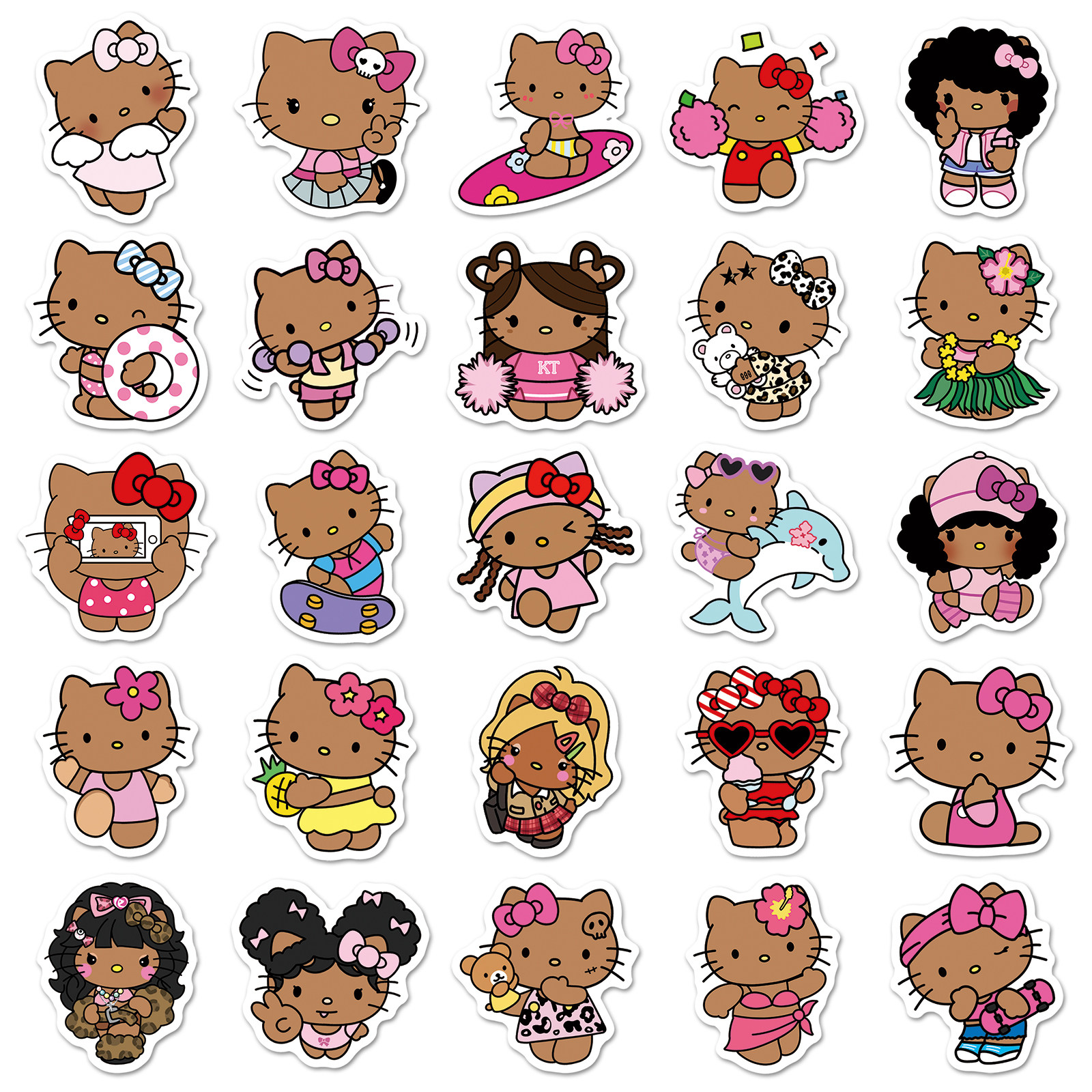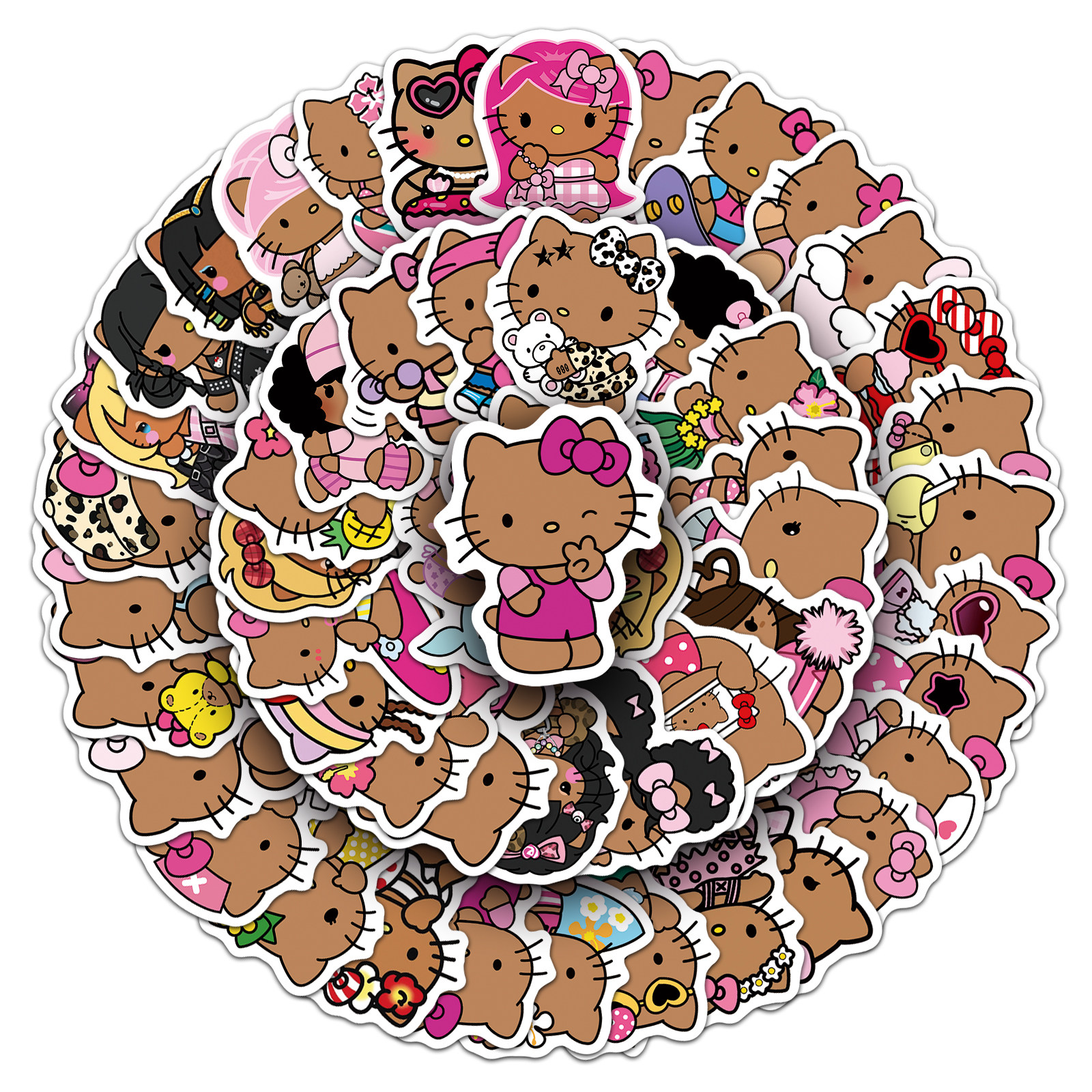 100张夏日黑皮Kitty可爱贴纸女孩kt凯蒂猫卡通diy装饰防水手帐相册文具学生宿舍衣柜冰箱吉他手机壳iPad贴纸