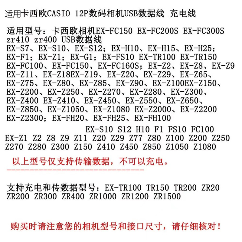 适用卡西欧相机数据线zr1000 zr1500 zr1200 tr150 zr200 tryxz3000 ex-tr200 ex-tr100充电线充电器