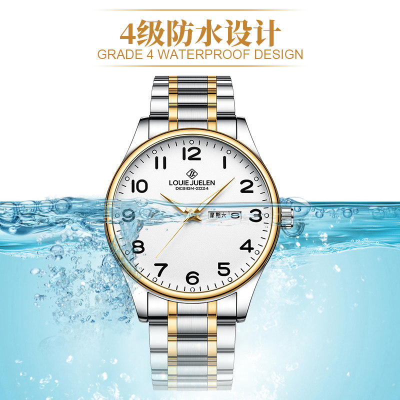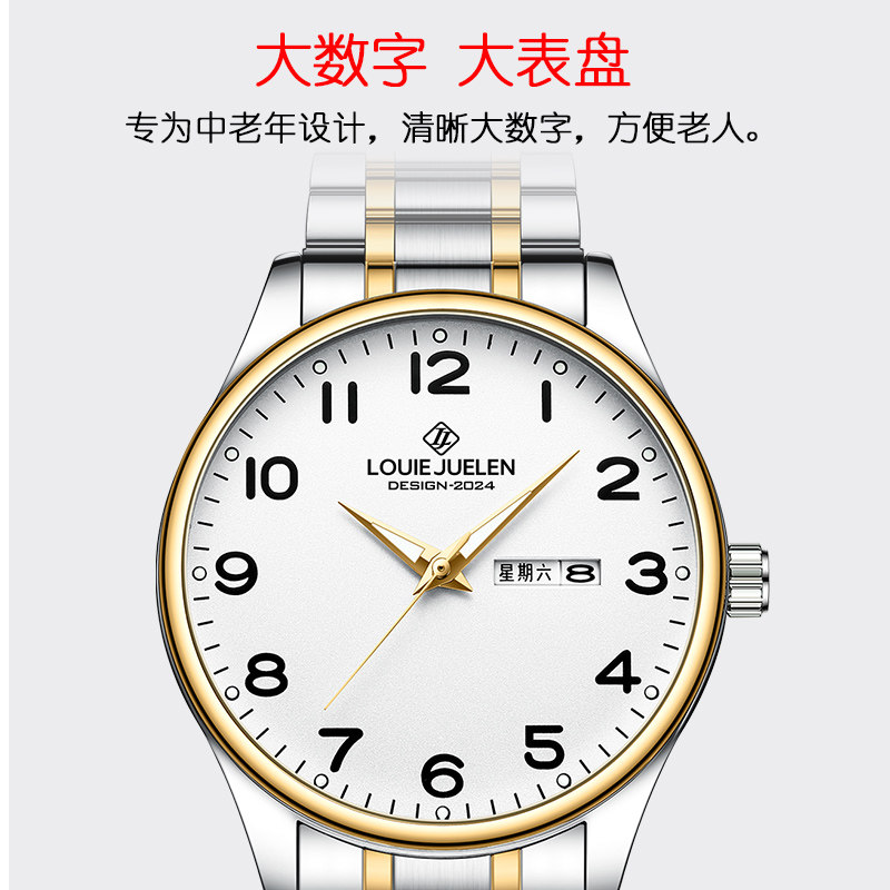 德国中老年人专用老人手表男女大数字爸爸妈妈情侣防水夜光石英表