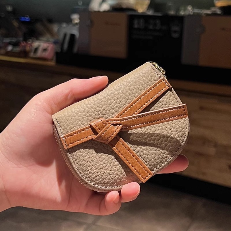 稻草人卡包女士新款证件女式牛皮小巧真皮拉链钱夹小众银行卡钱包