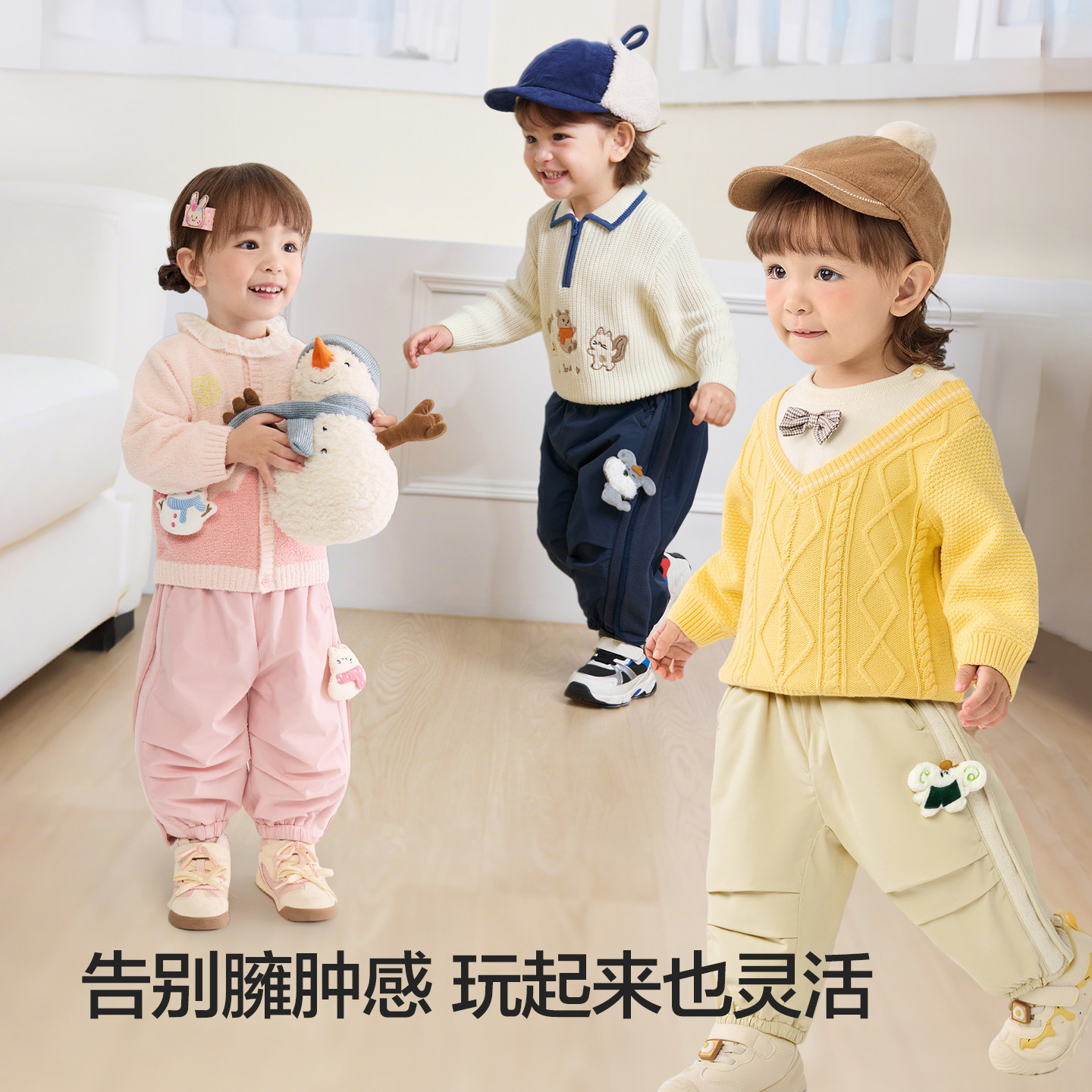 巴拉巴拉童装宝宝长裤加绒保暖伞兵裤男女童2025新款冬装儿童裤子