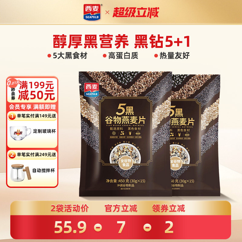 西麦五黑粗粮麦片450g*3袋高蛋白质芝麻黑麦混合懒人速食营养早餐