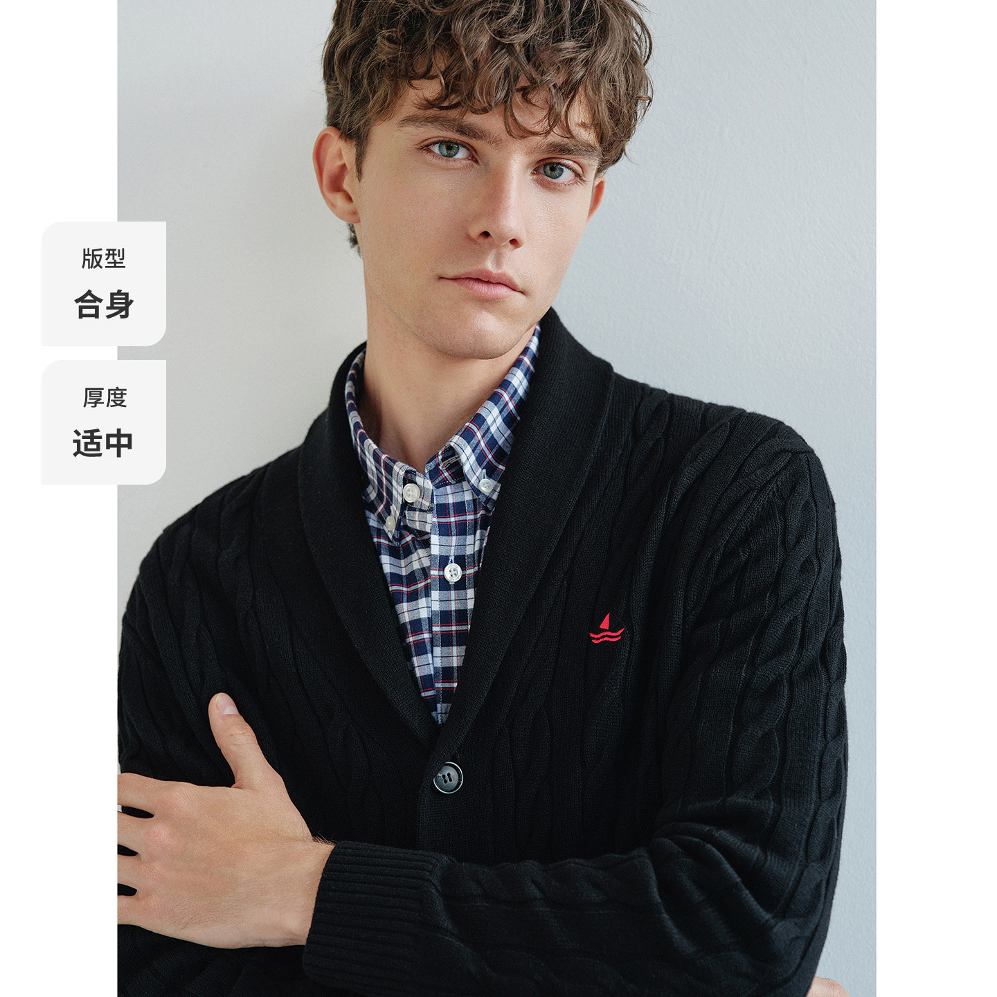 Navigare意大利小帆船休闲纯羊毛针织衫男25秋冬新品通勤开衫毛衣