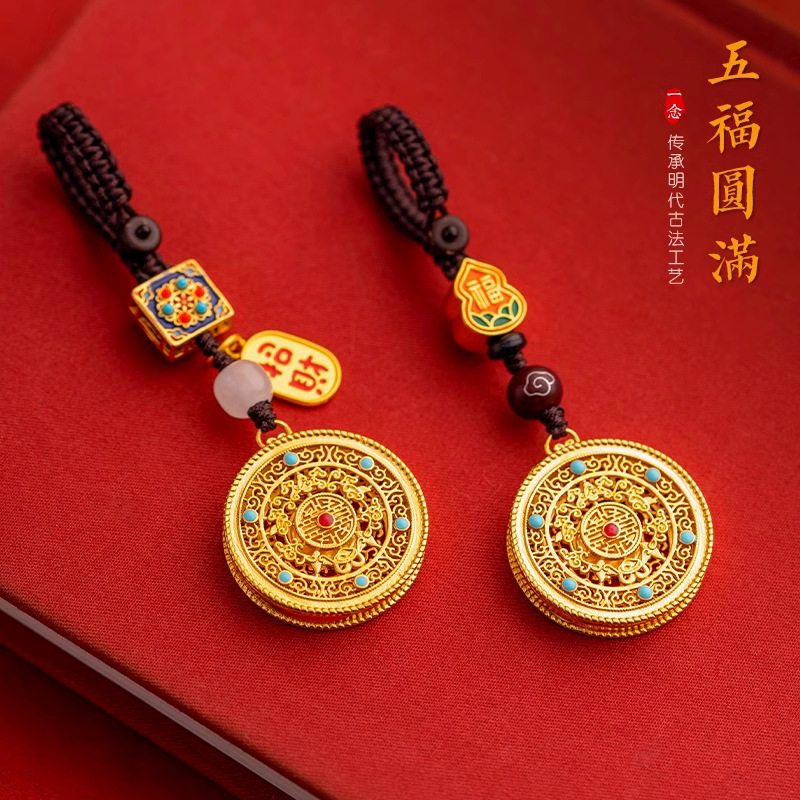 古法黄铜五福圆满汽车钥匙扣挂件高档男士挂饰创意新年礼品财神