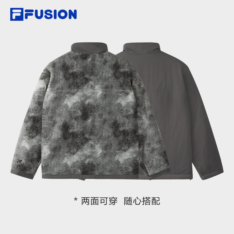 FILA FUSION斐乐潮牌双面穿外套男2025冬季新款休闲仿羊羔绒上衣