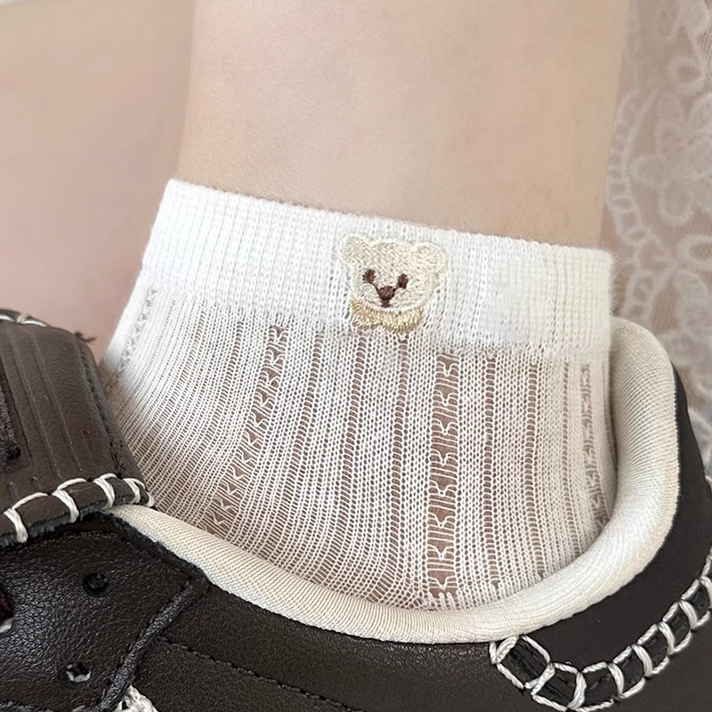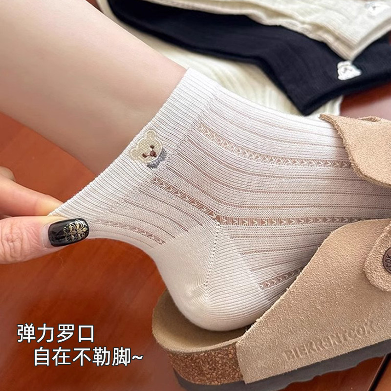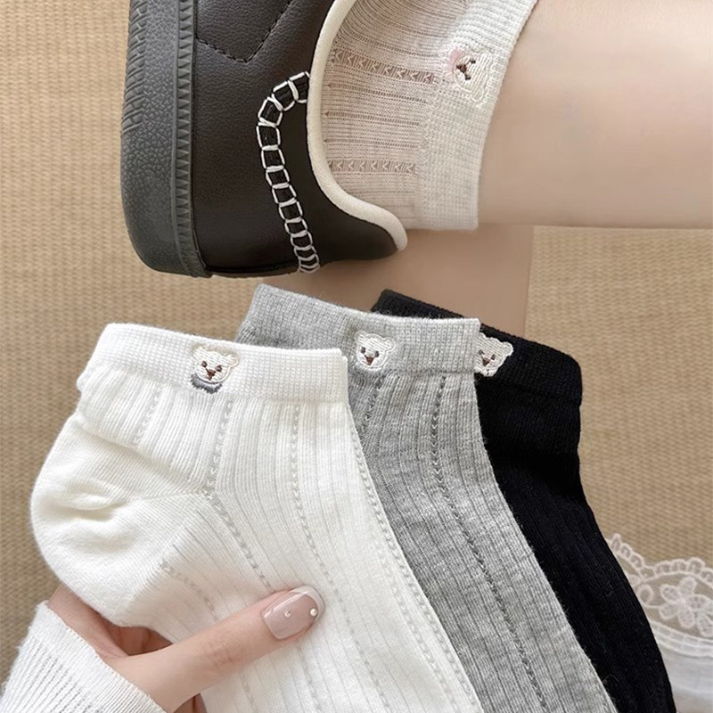 小熊袜子女夏季薄款短袜纯色网眼透气防滑不掉跟防臭儿童可爱船袜