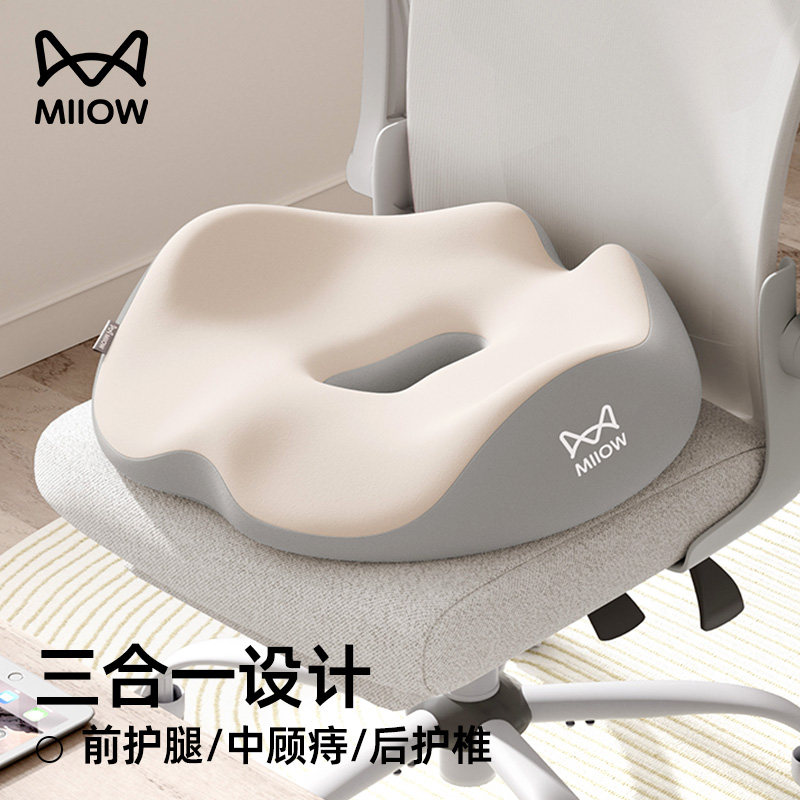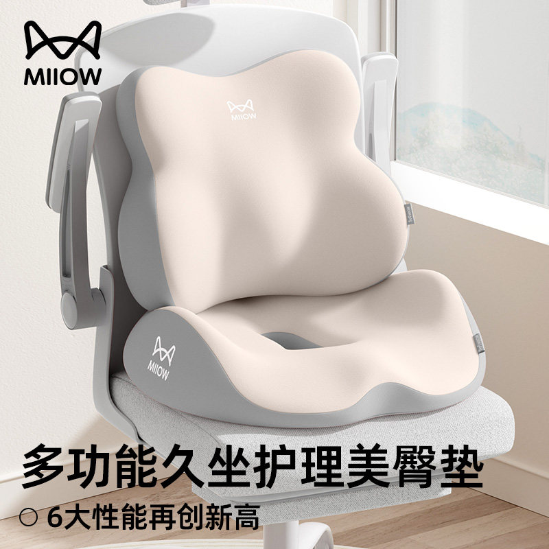 猫人坐垫办公室腰靠久坐神器靠背一体记忆棉学生座椅垫护腰椅子垫