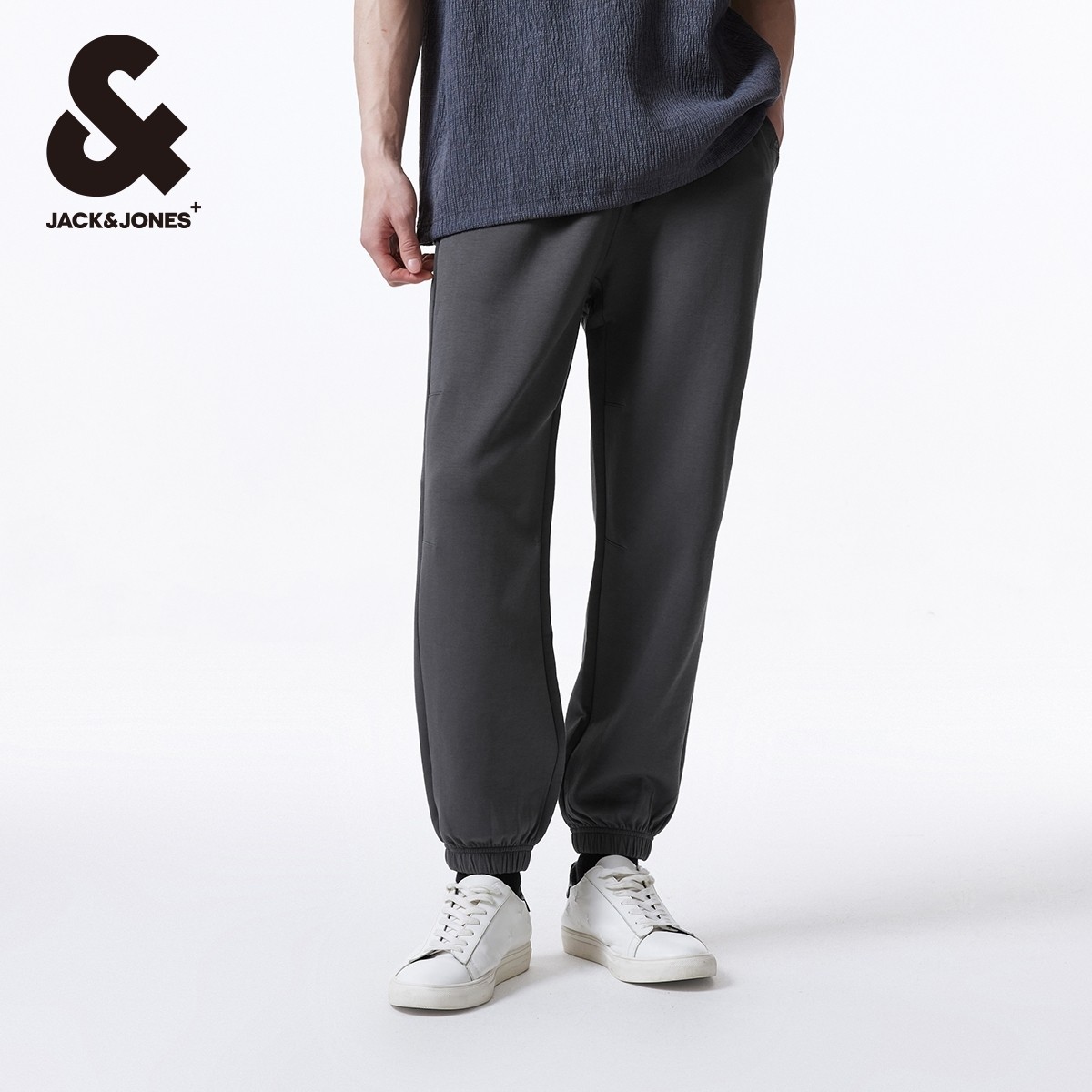 杰克琼斯outlets春季束脚裤松紧3D立体膝盖设计长裤休闲裤子男装