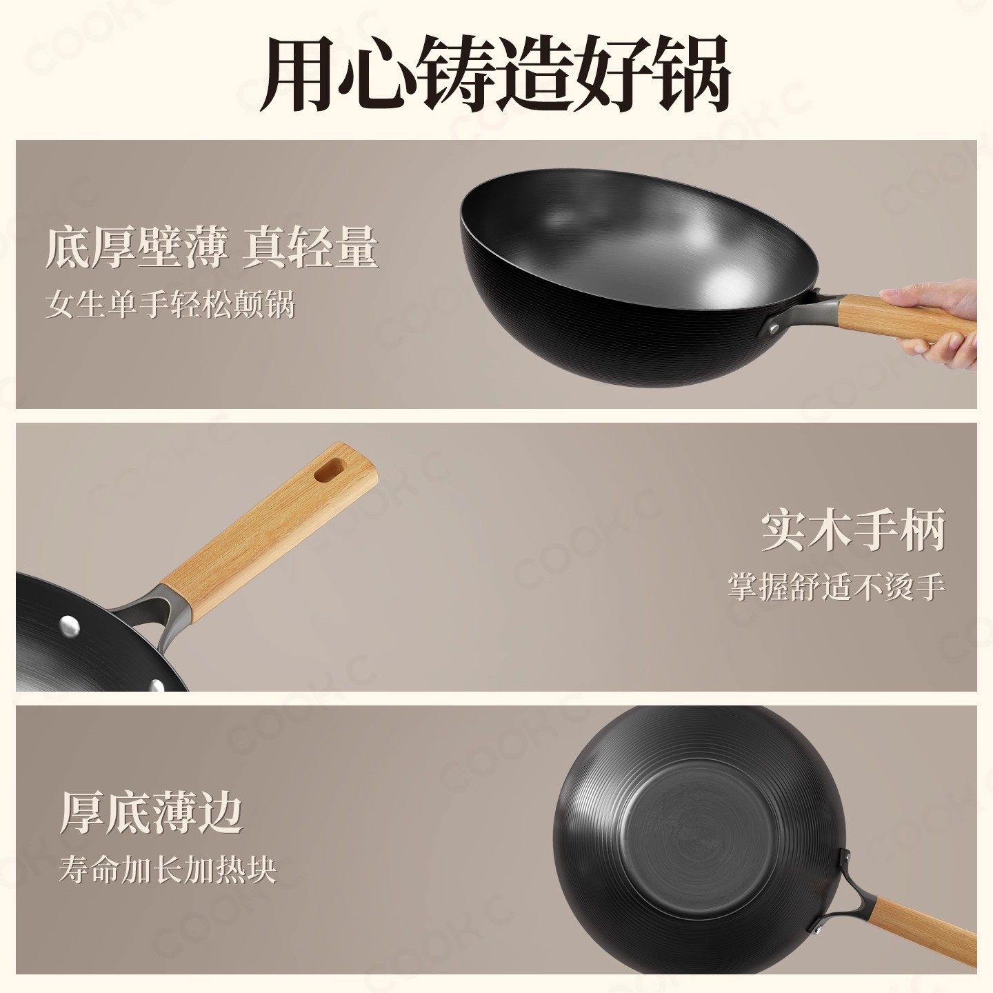 【经典款】中康精铁炒锅铁锅氮化防锈无涂层炒锅电磁炉燃气灶通用