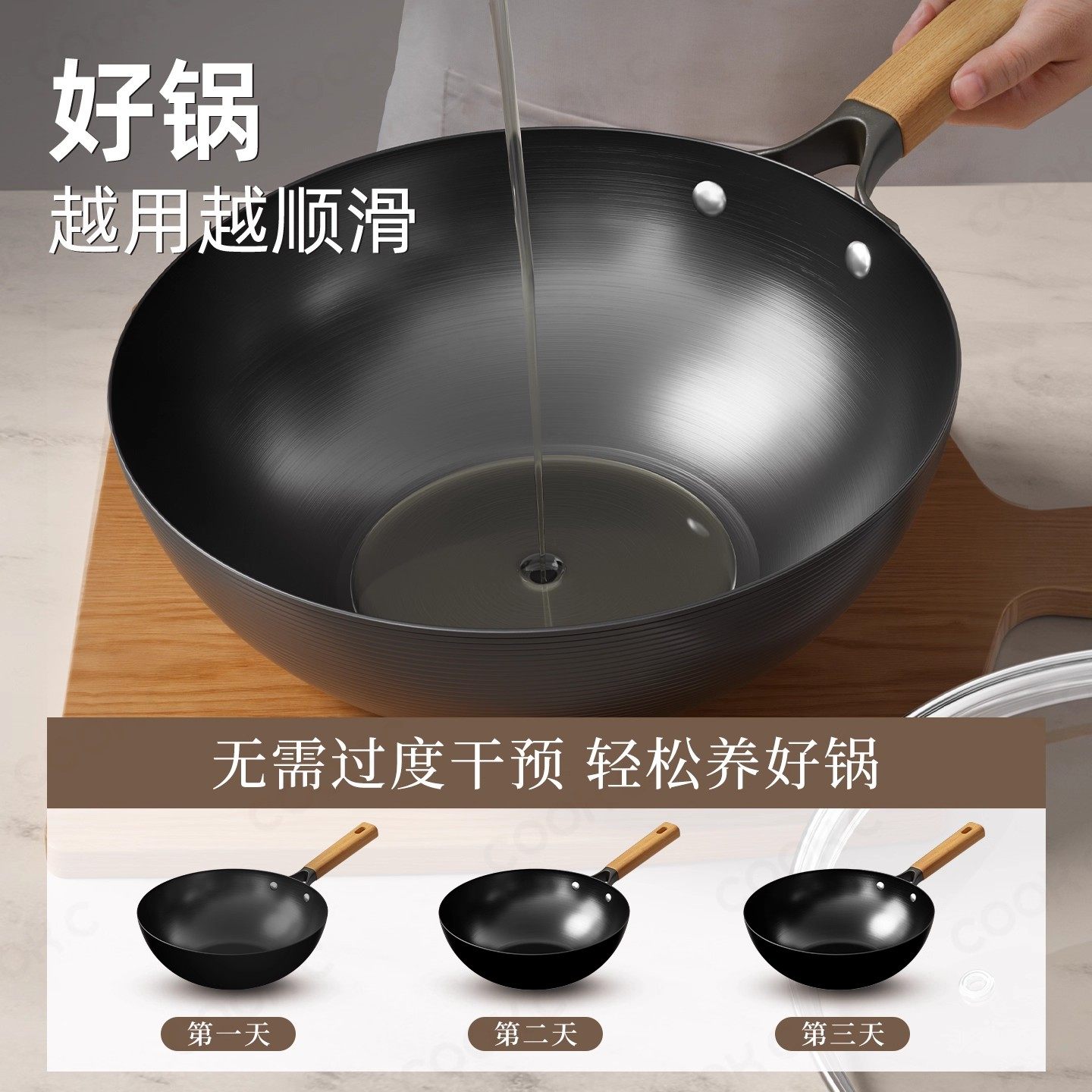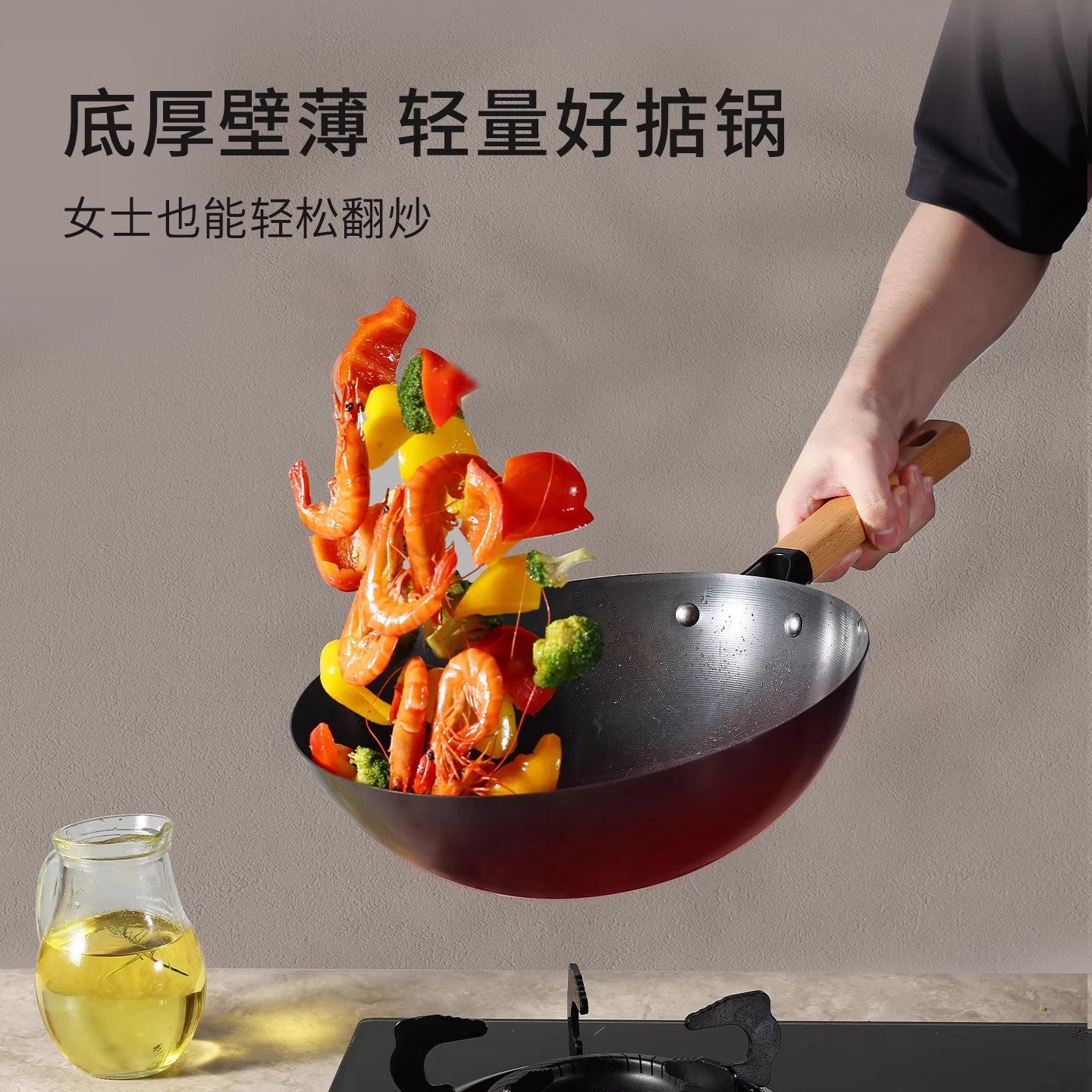 铁锅官方旗舰炒菜锅老式炒锅铁锅家用不粘锅无涂层燃气灶适用