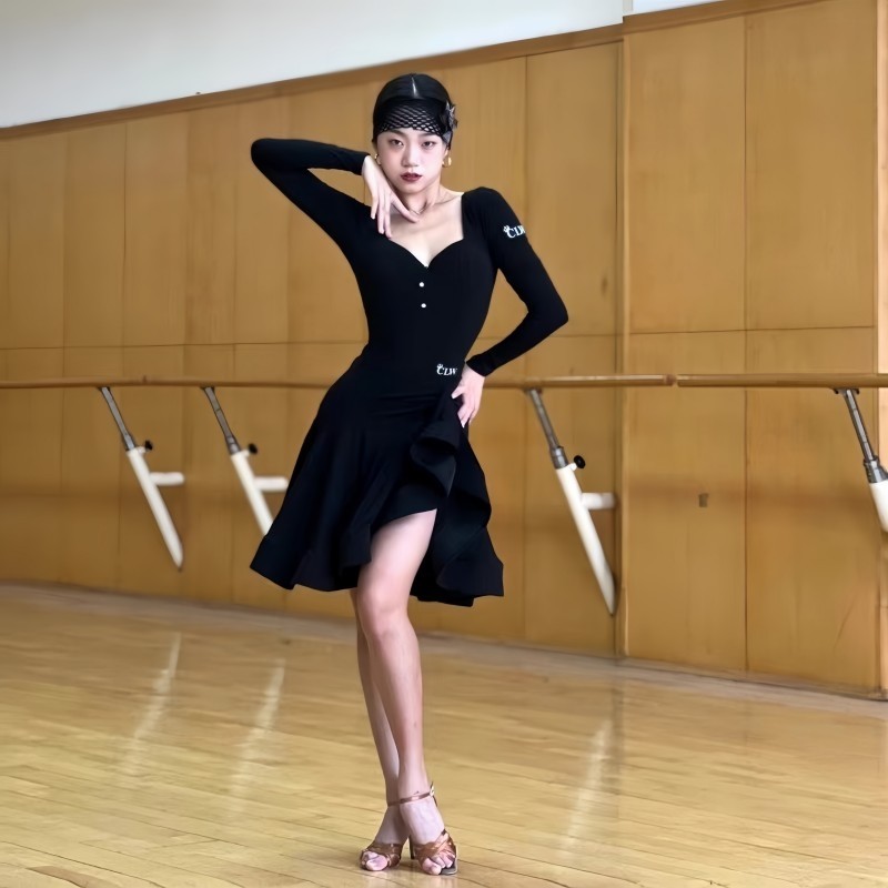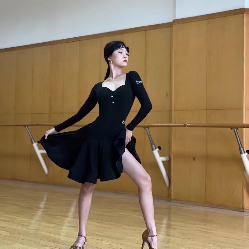 臻舞新款拉丁舞服成人拉丁上衣鱼骨半裙艺考班服冬季黑色表演伦巴
