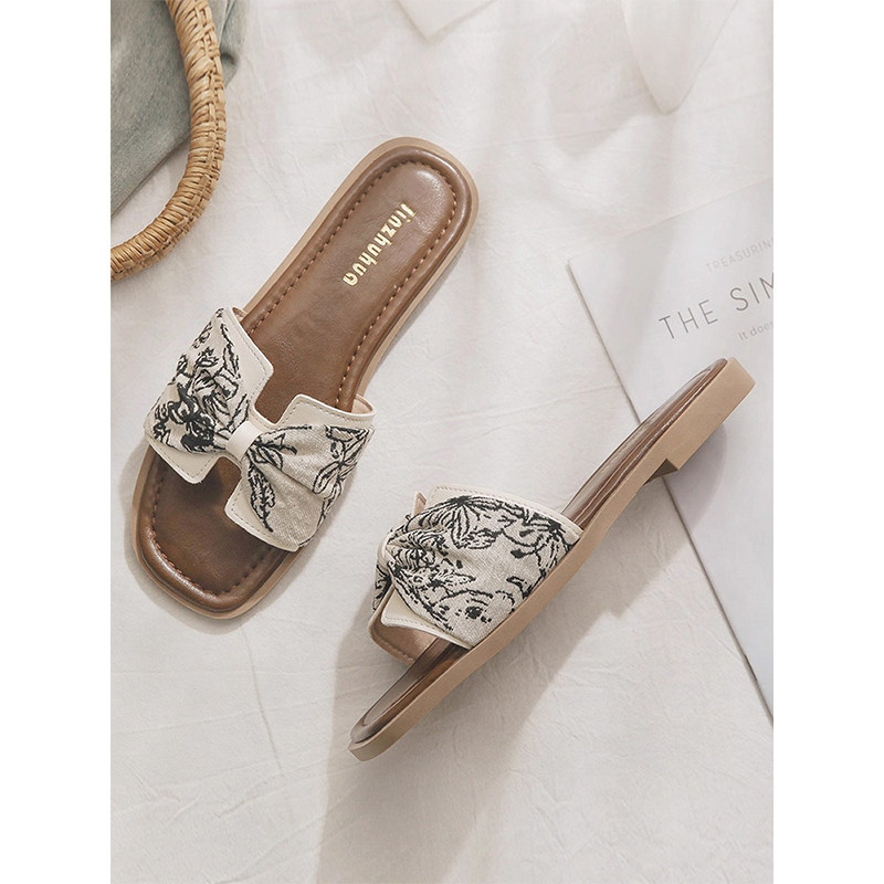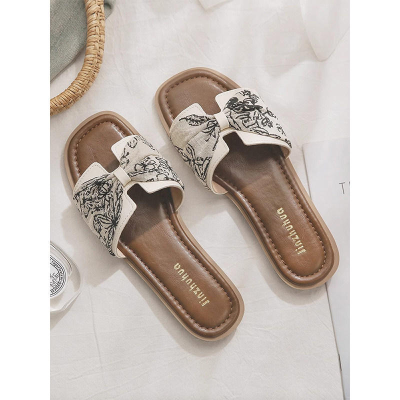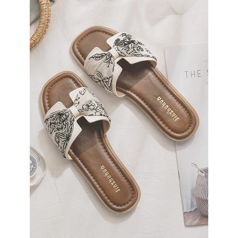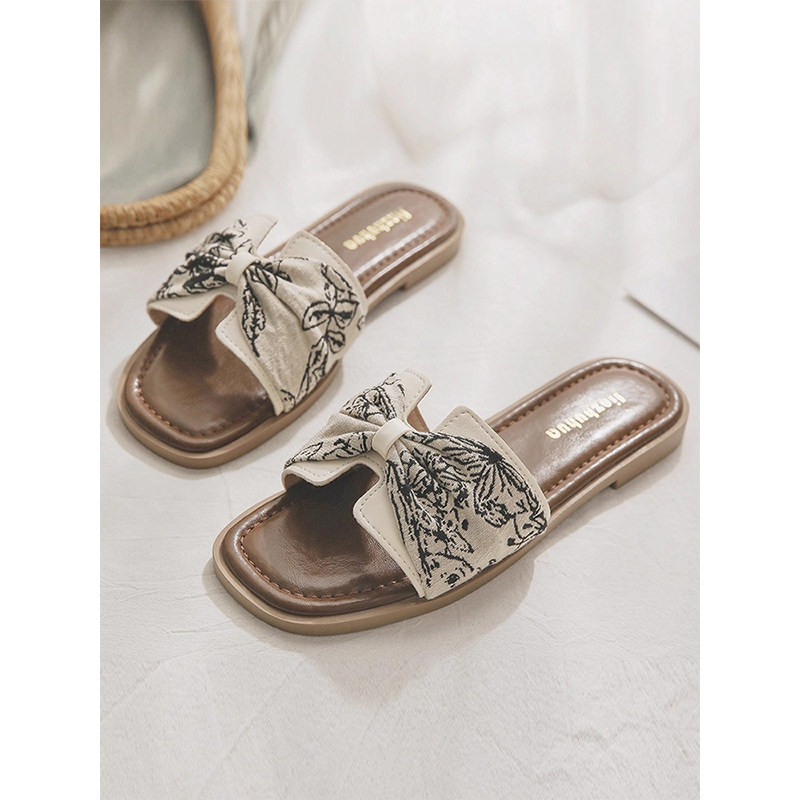 绝美法式配裙子平底外穿外出小凉拖鞋女2025新款羊皮时尚橡胶