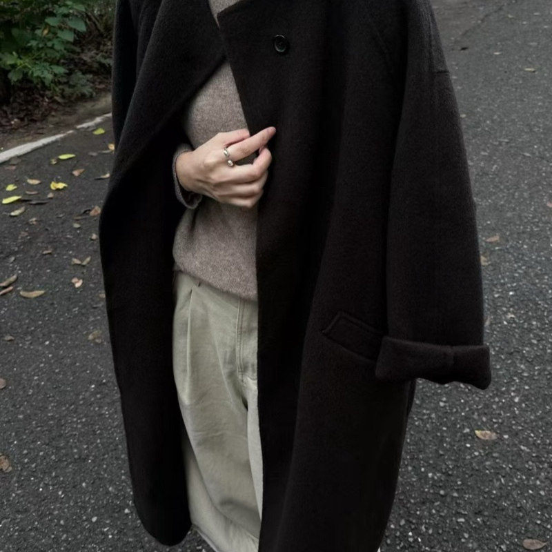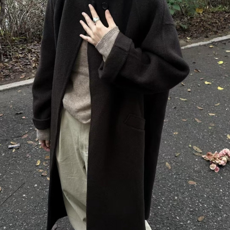 高端赫本风一粒扣美丽诺羊毛大衣女秋冬宽松慵懒长款羊绒外套风衣