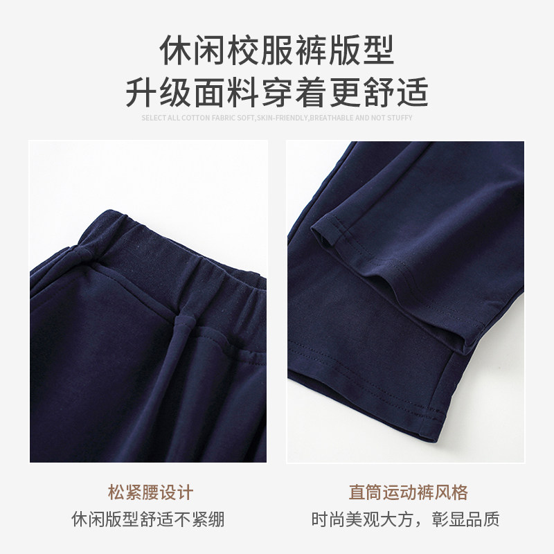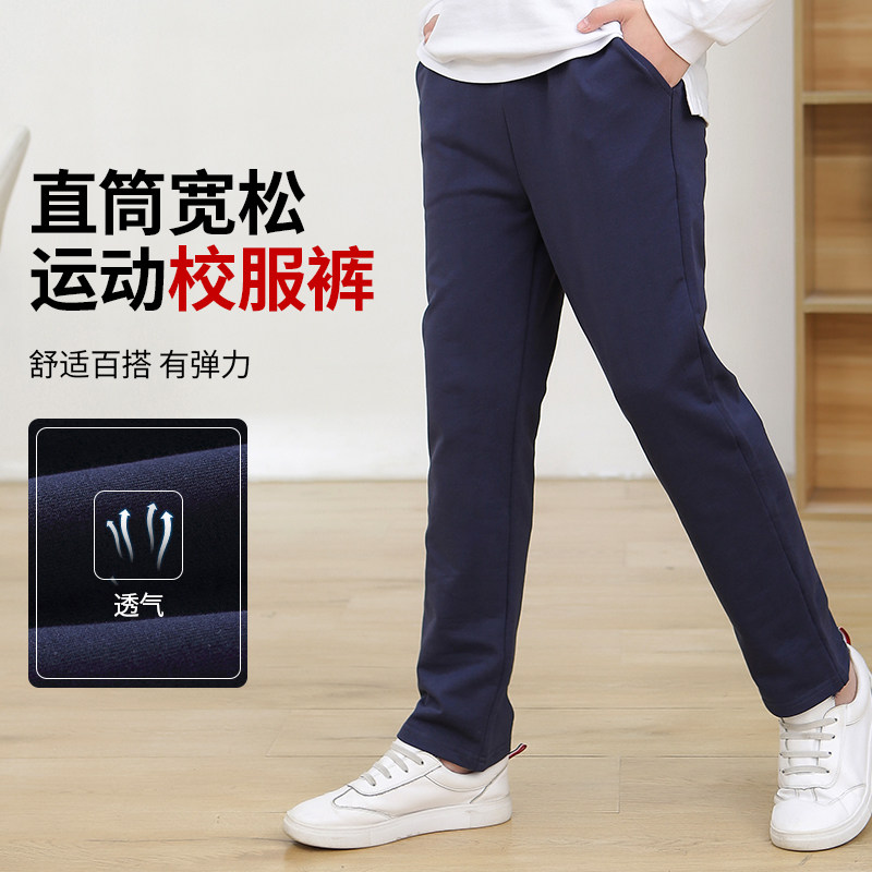 儿童校服裤子春秋款蓝女童小学生深蓝色校裤男童藏青色纯棉运动裤