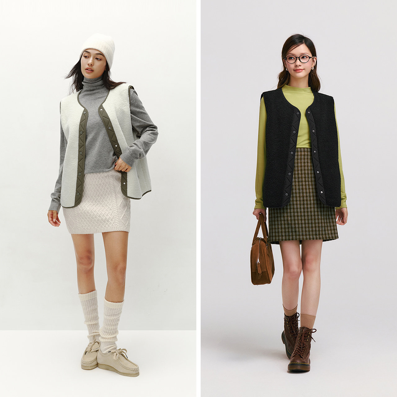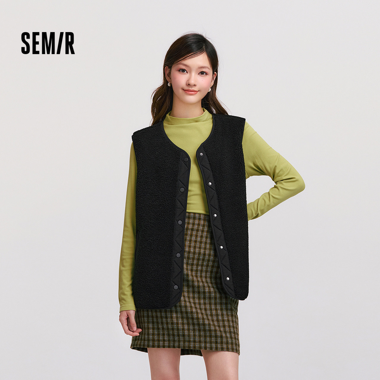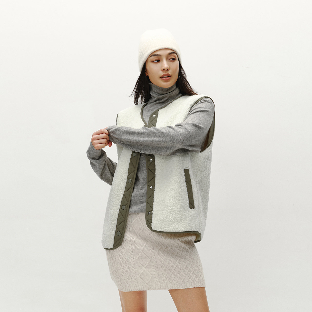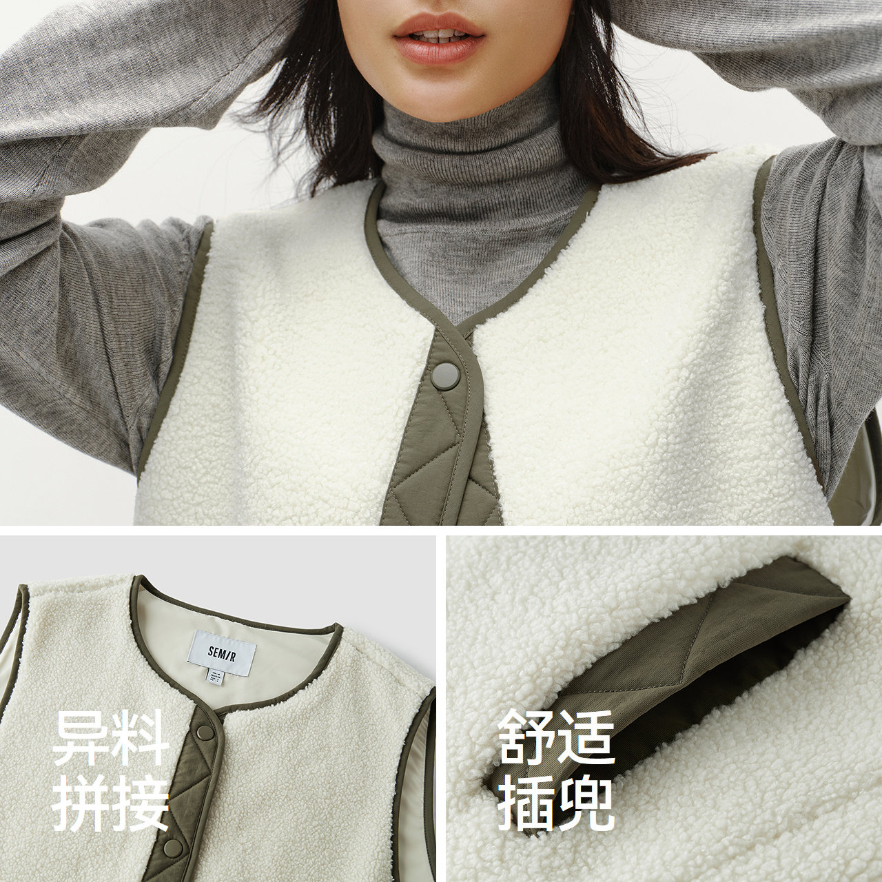 森马马甲女冬季摇粒绒拼接圆领上衣简约休闲女士时尚潮流个性外套