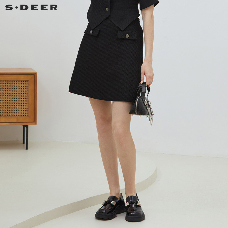 sdeer圣迪奥女装秋小香风套装高腰A字包臀短裙S23181301