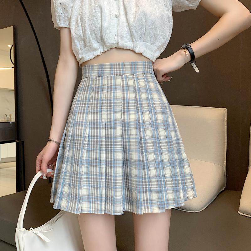 大码jk格裙百褶裙女夏韩版高腰显瘦学院风A字半身裙胖mm格子短裙