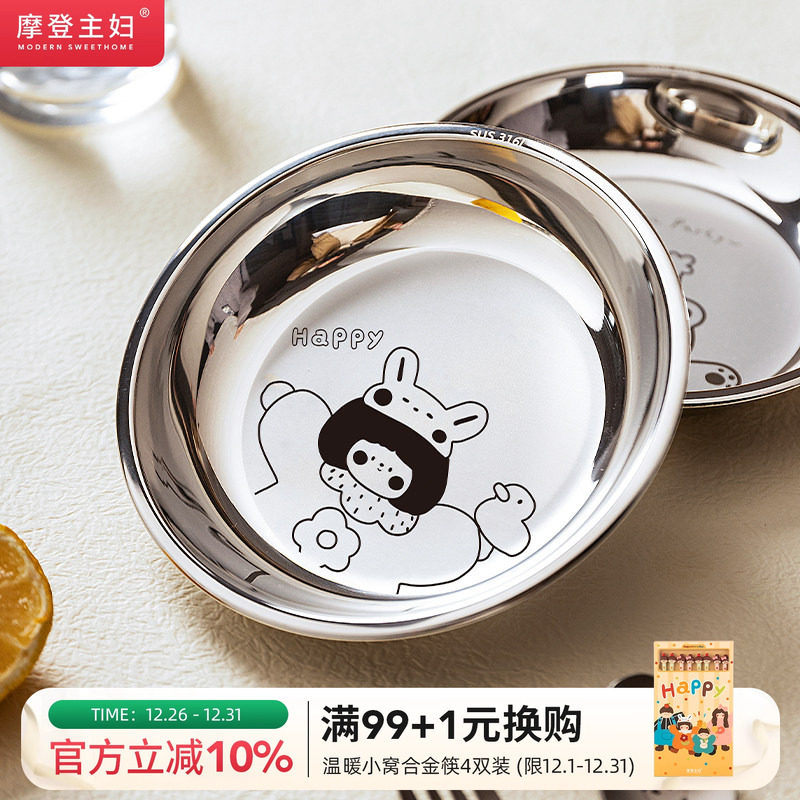 摩登主妇316不锈钢盘儿童餐具食品级碟子家用辅食小盘子宝宝餐盘