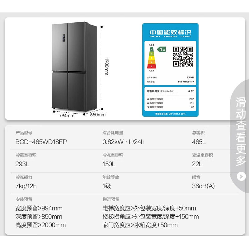 Ronshen/容声 BCD-465WD18FP风冷无霜一级变频十字对开门家用冰箱
