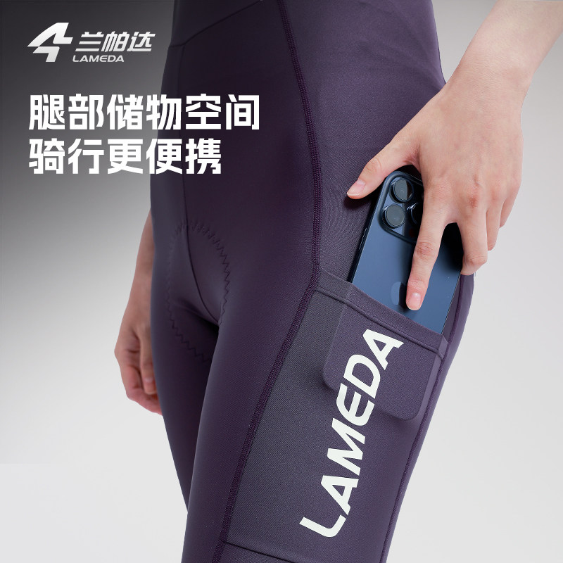 兰帕达双箭头长裤背带高腰夏秋季带口袋带屁垫自行车公路车女灵放