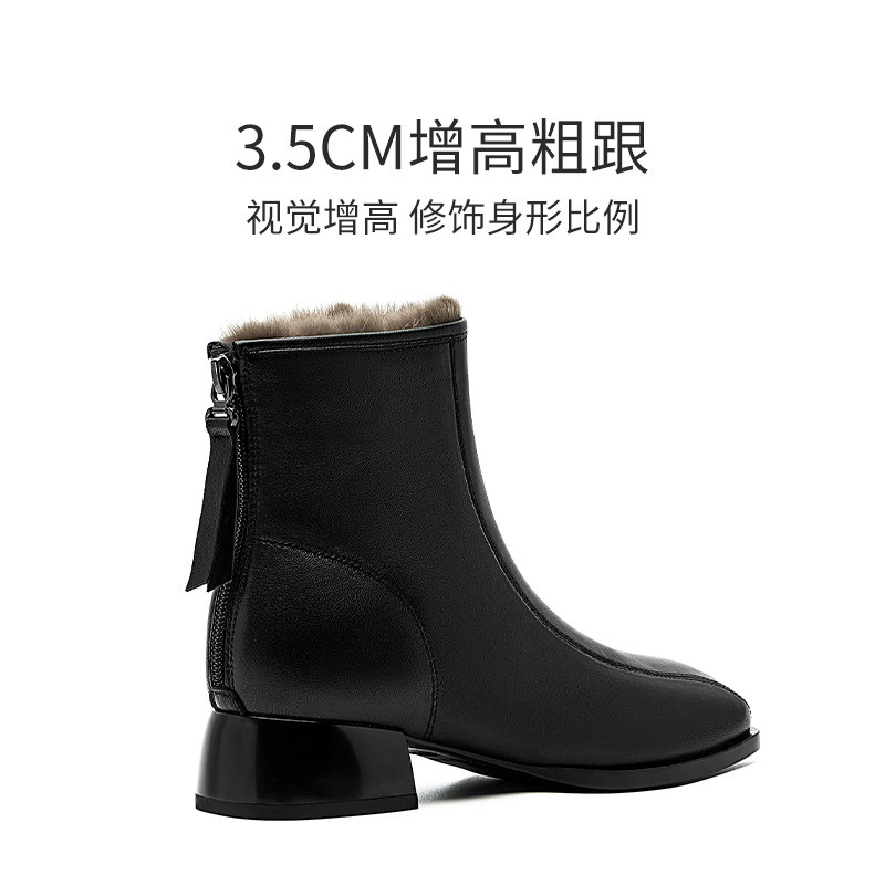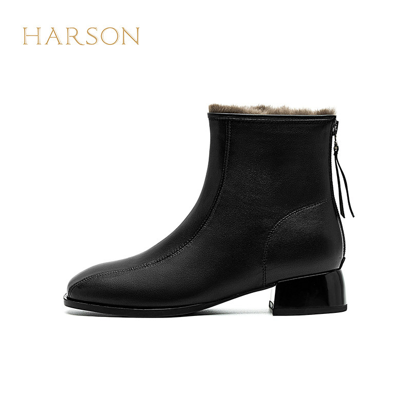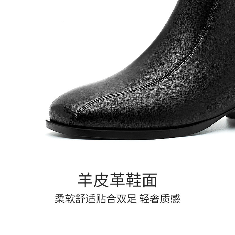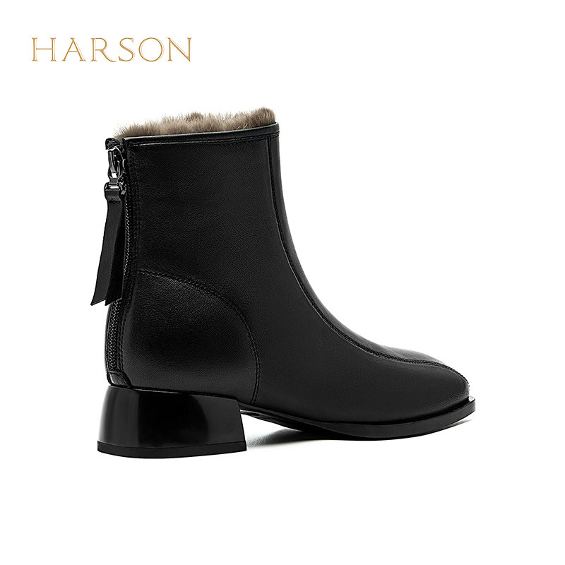 哈森粗跟短靴女秋冬新款羊皮革英伦风时装靴HWA240192