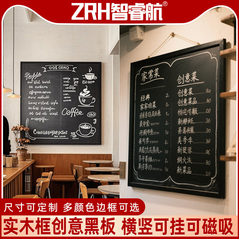 实木框磁吸小黑板墙挂式餐饮咖啡店摆摊大黑板店铺菜单牌商用展示广告冰箱贴粉笔写字板儿童家用教学磁性画板