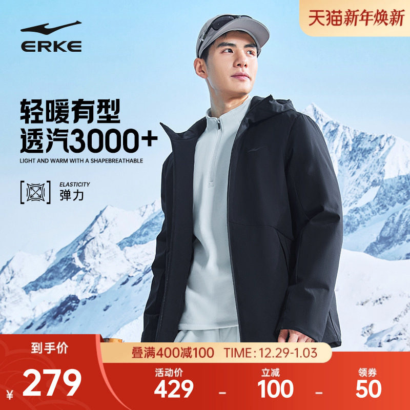 鸿星尔克棉服男款2025冬季新款男士通勤防风运动外套行政夹克男装