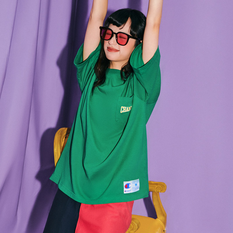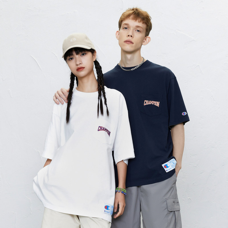 Champion冠军短袖T恤口袋刺绣变形印花情侣棉质上衣舒适日常潮流