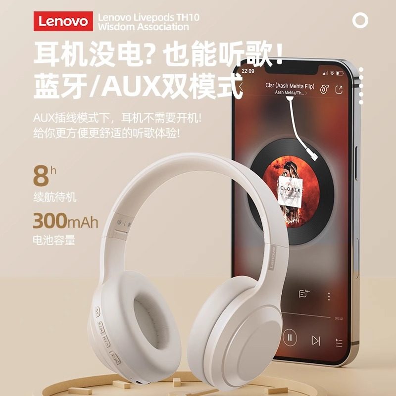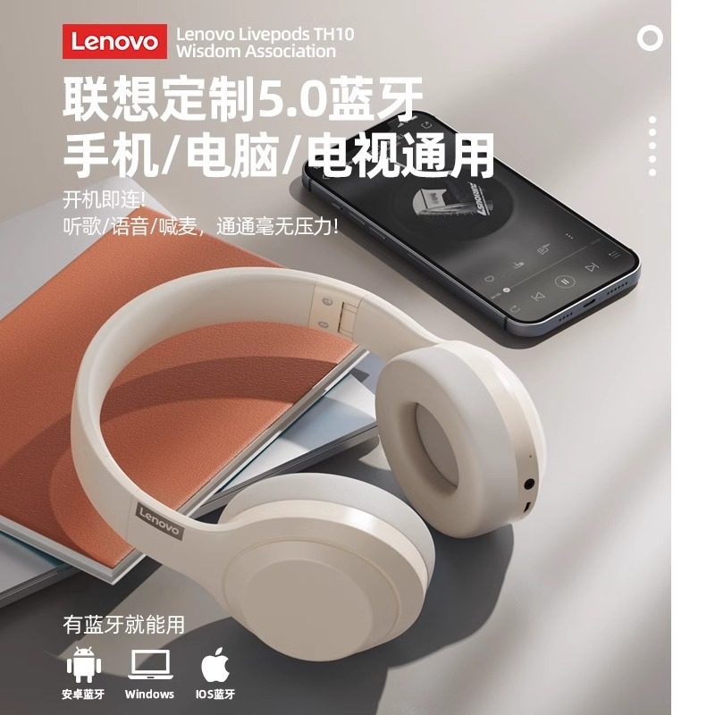 Lenovo/联想 TH10头戴式蓝牙耳机无线电脑电竞游戏长续航品牌耳机