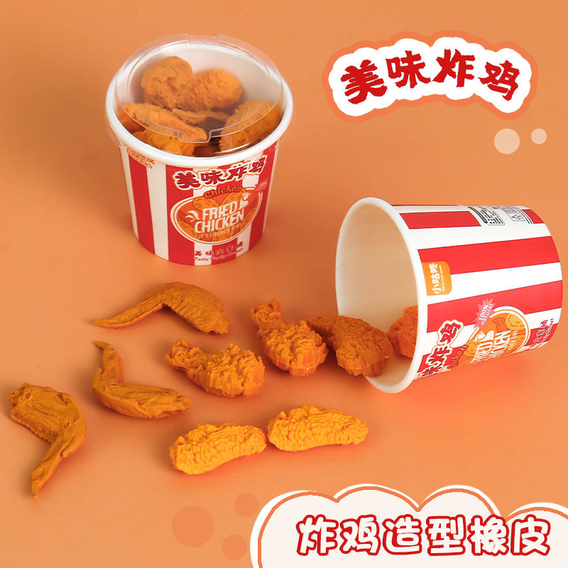 卡通仿真全家桶炸鸡套装橡皮擦迷你鸡翅造型鸡腿创意学生橡皮奖品