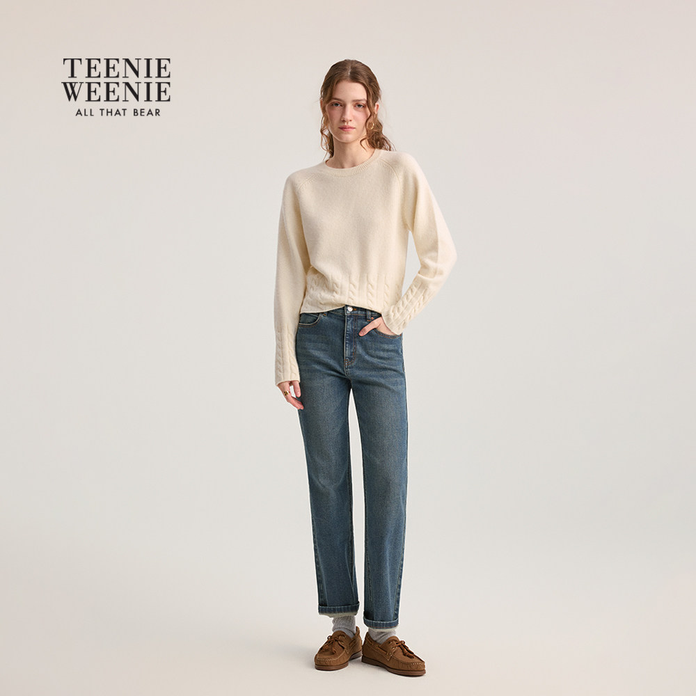 【含绵羊毛】TeenieWeenie小熊女装针织衫25年秋宽松舒适纯色毛衣