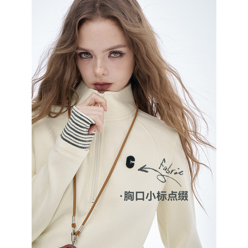蕉下半拉链摇粒绒打底衫女士秋冬修身新款保暖户外上衣长袖T恤