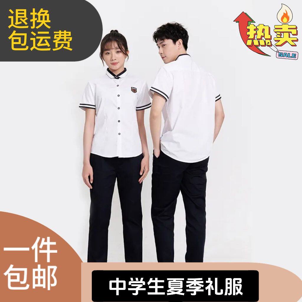 中学款南宁市校服初中高中学生制服礼服长袖衬衫男女透气学院