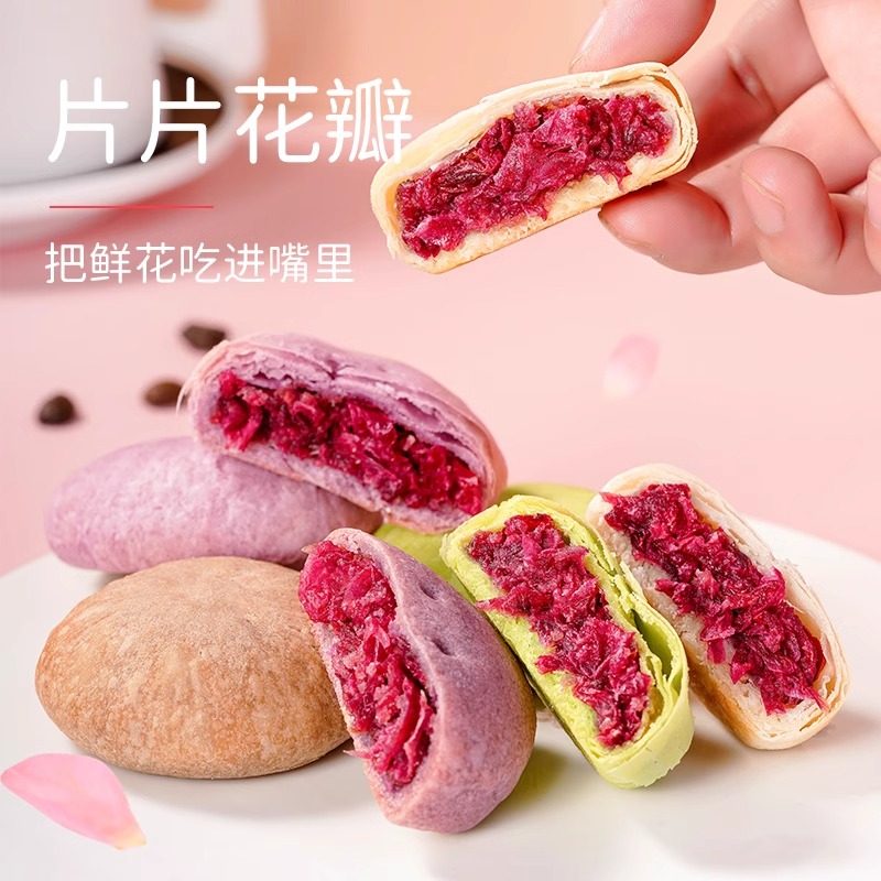 云南特产玫瑰鲜花饼抹茶紫薯低糖早餐零食手工传统老式好吃整箱