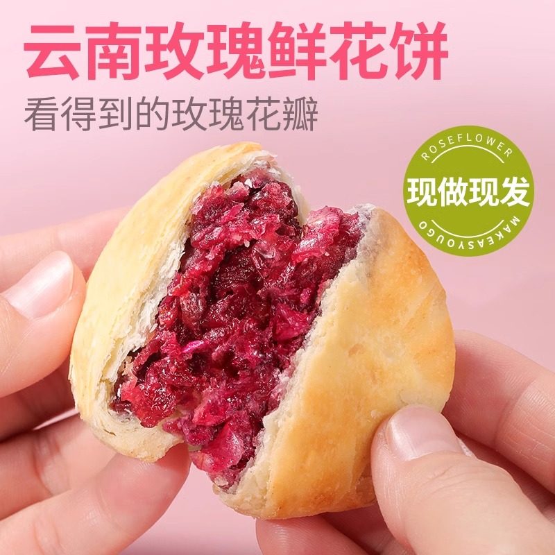 玫瑰鲜花饼云南特产中秋月饼礼盒早餐糕点小吃零食休闲食品