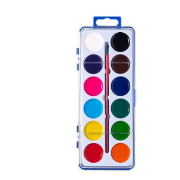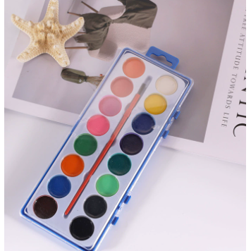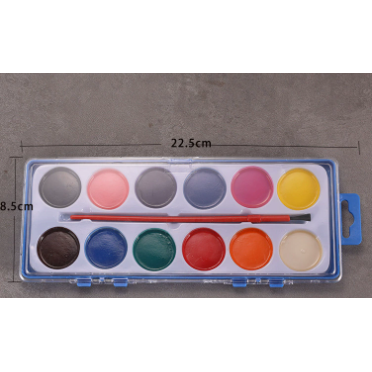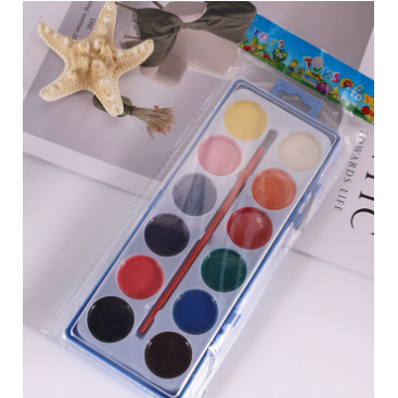 儿童美术颜料8色12色大方盒半干固体颜料 粉饼绘画套装水彩画