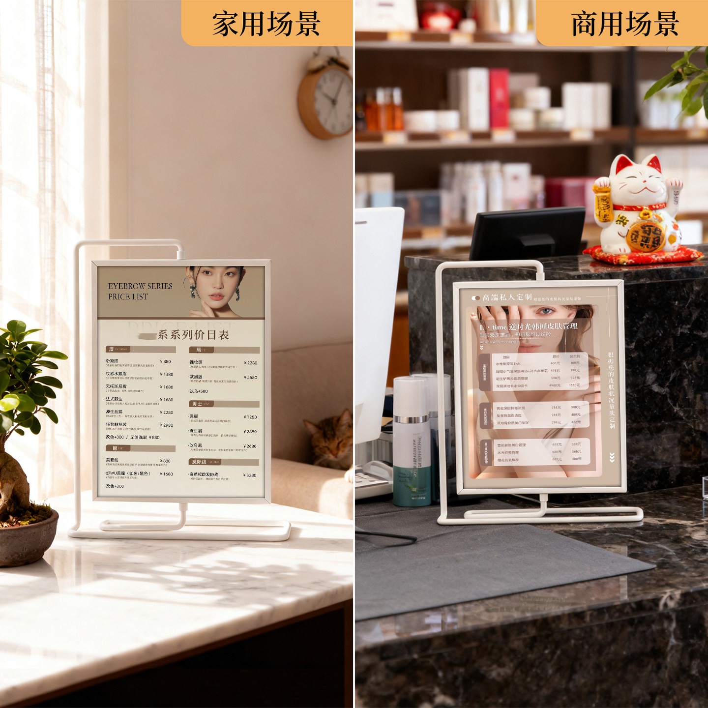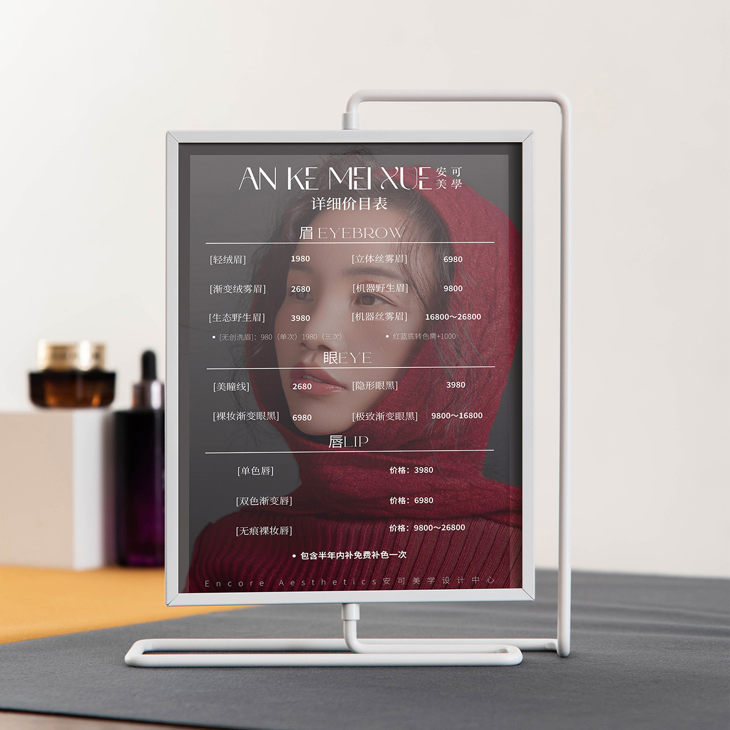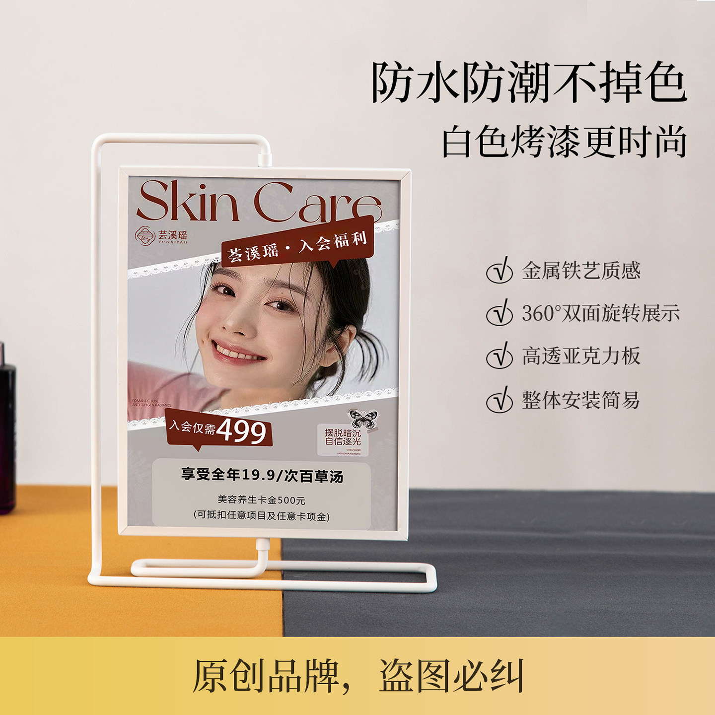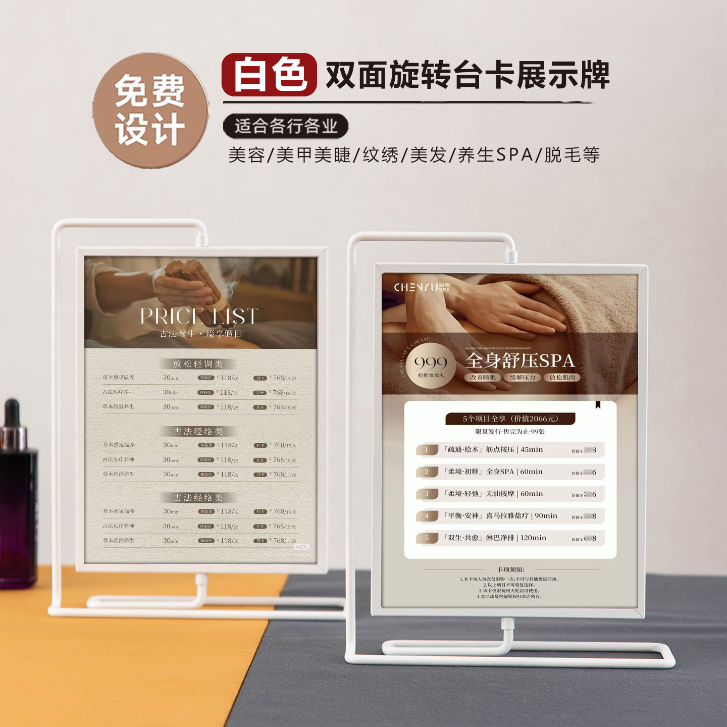 白色双面旋转台卡美容院美发店价目表展示牌养生馆价格表设计定制美甲美睫纹绣价目表桌面立式金属展示架摆台
