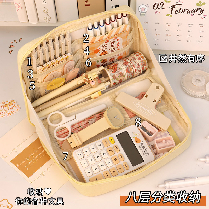 大容量中小学生笔袋分类收纳高颜值化妆包铅笔盒计算器文具收纳袋