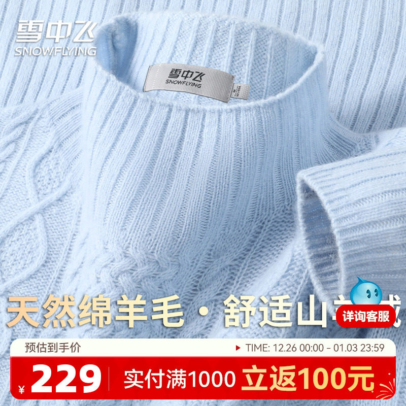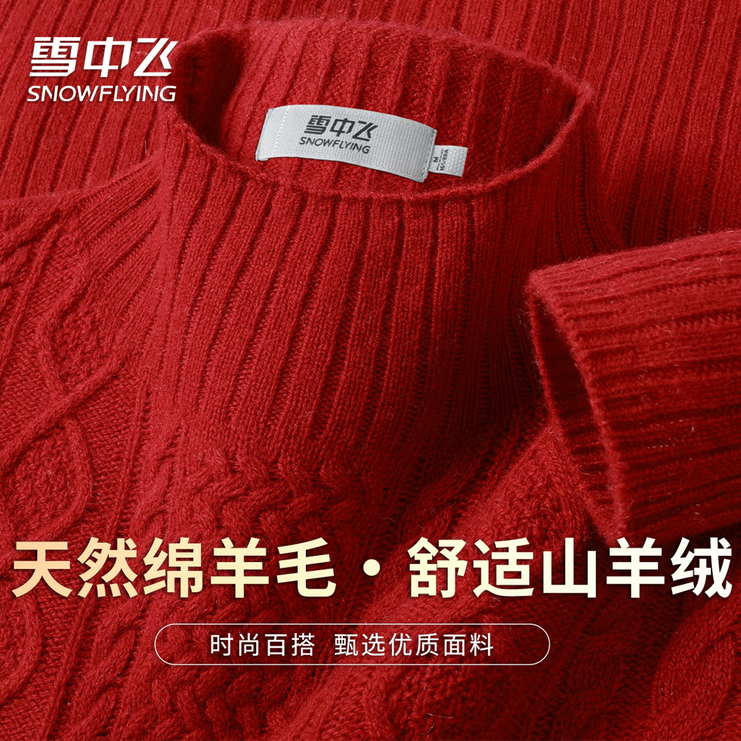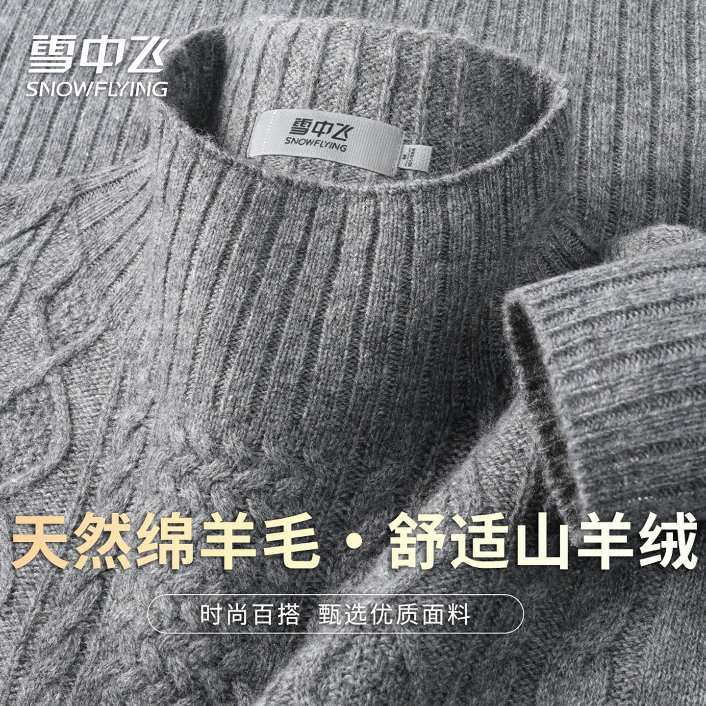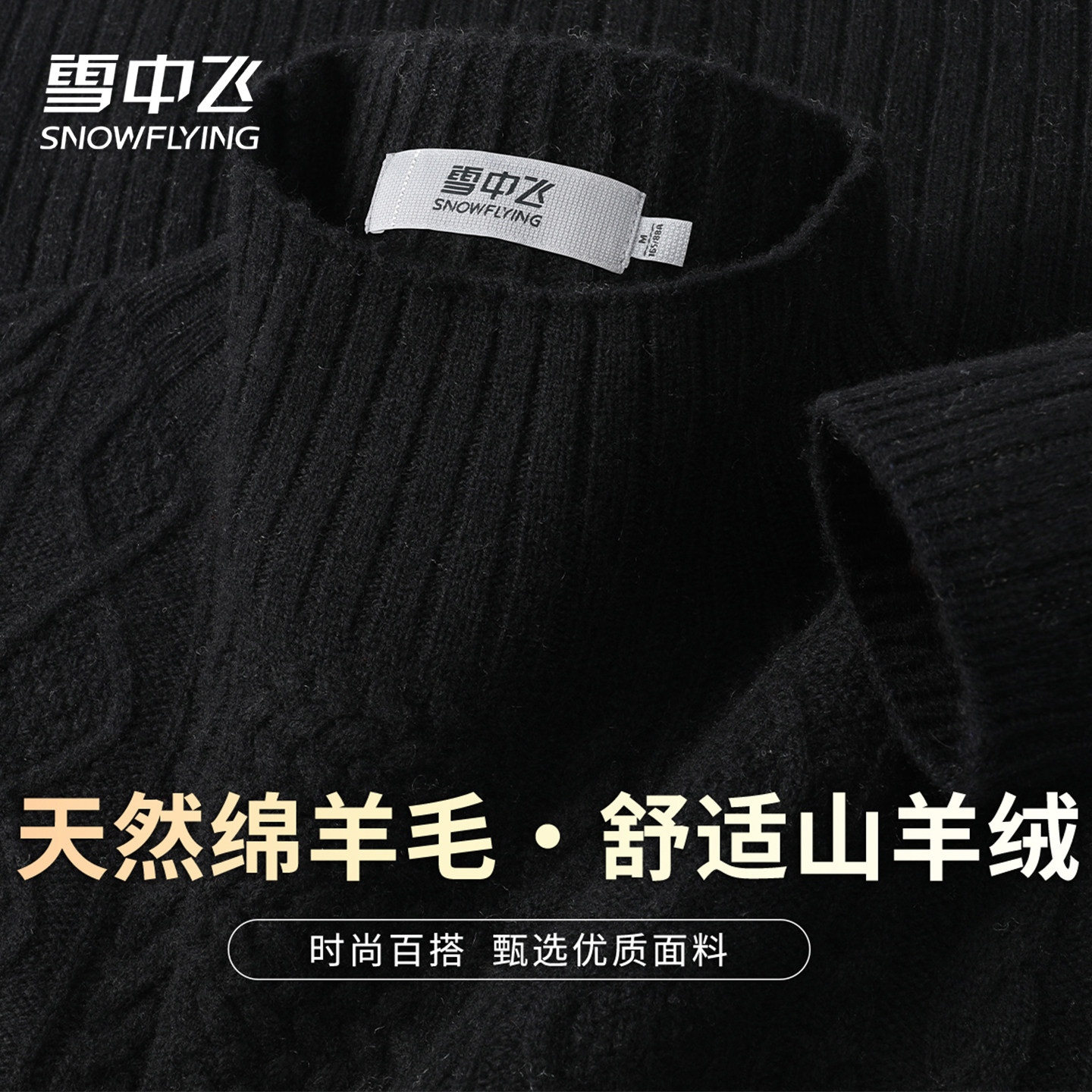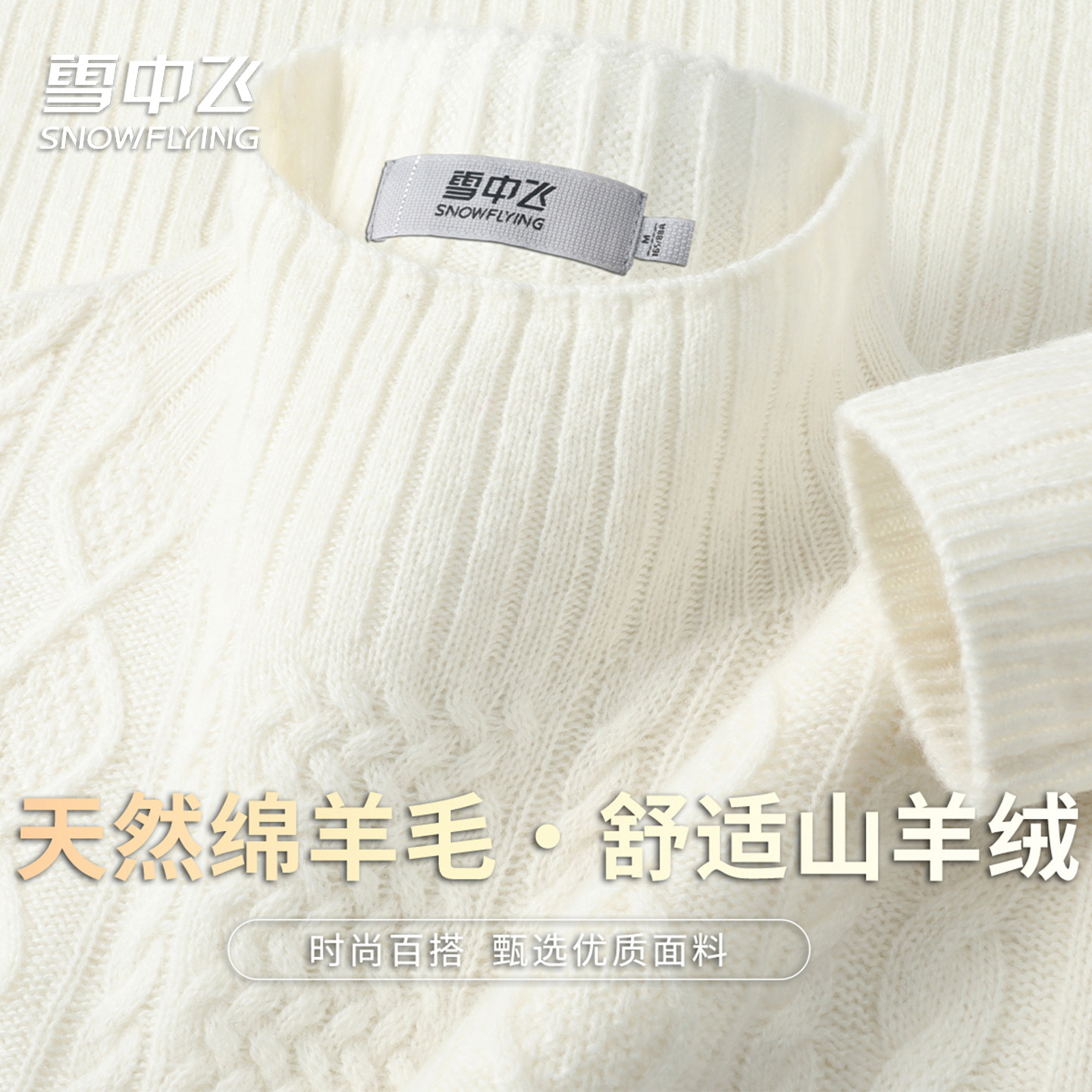 雪中飞【重磅绞花】半高领纯色打底衫女厚款保暖套头羊毛衫W