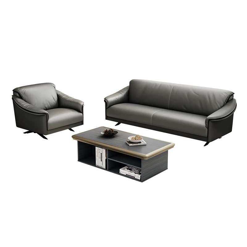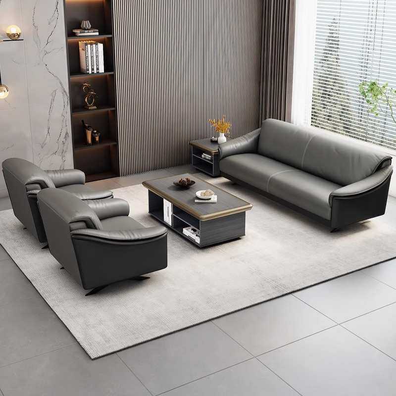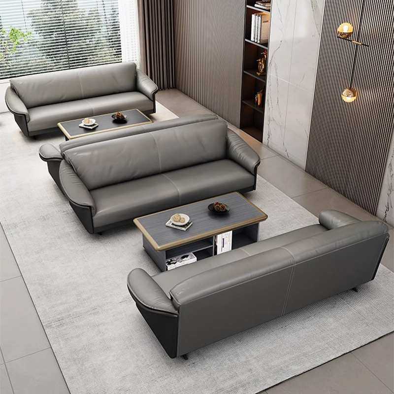 办公沙发茶几组合皮艺简约现代商务接待办公室沙发意式极简三人位