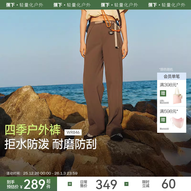蕉下户外直筒裤女防泼水冲锋裤高弹显瘦运动防护徒步宽松登山裤子