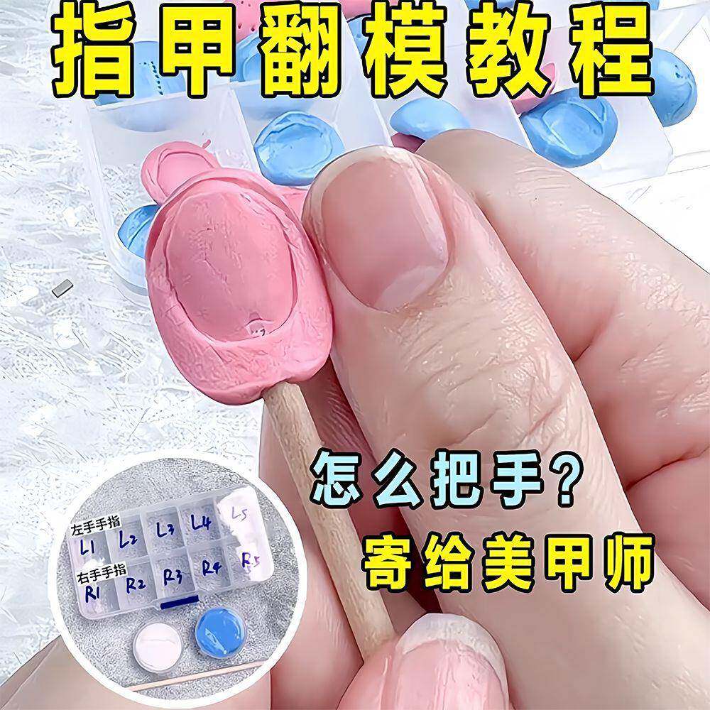 美甲手指倒膜穿戴甲翻模泥复制手指甲盖模具手指模型速干翻模AB泥